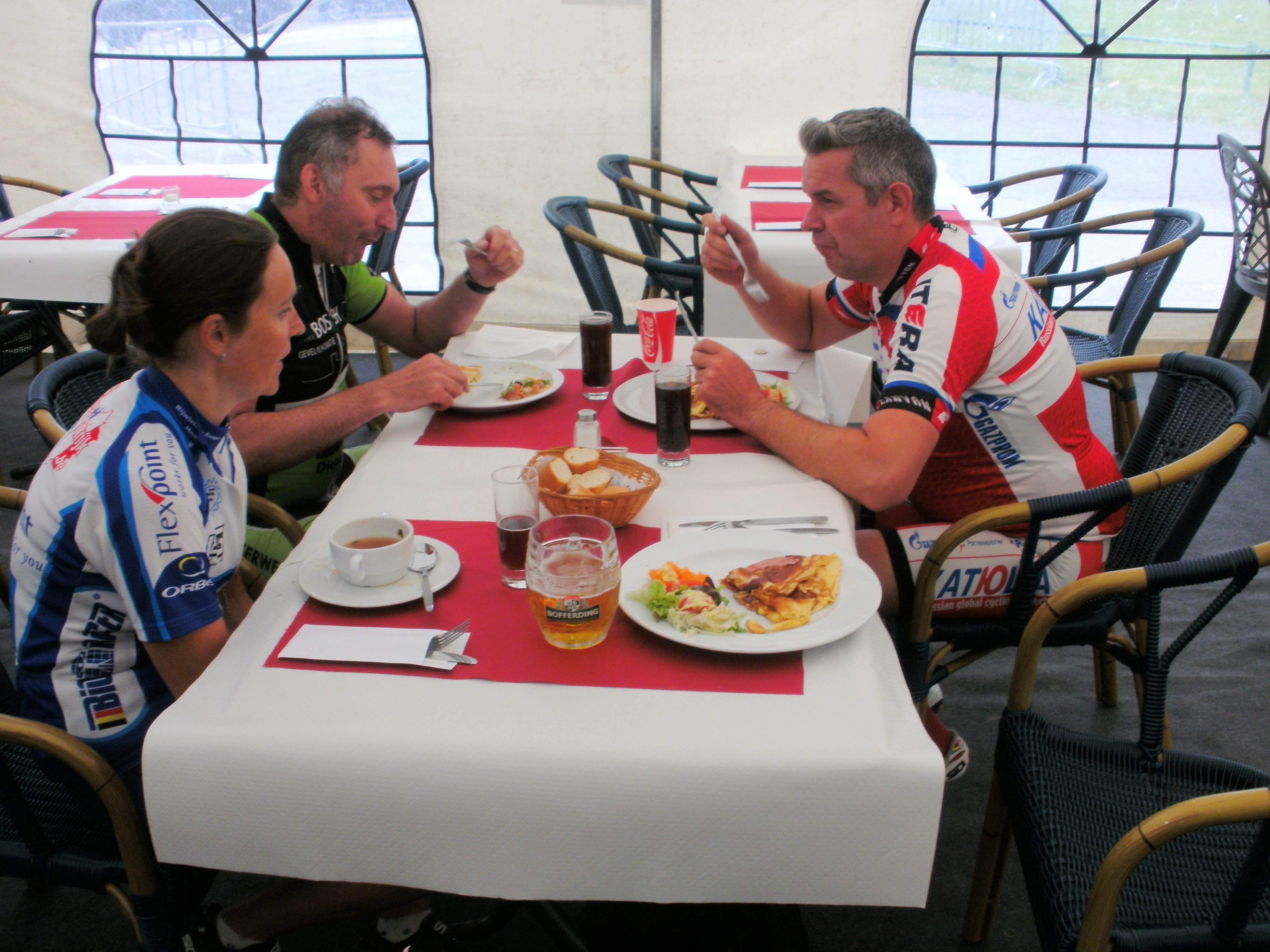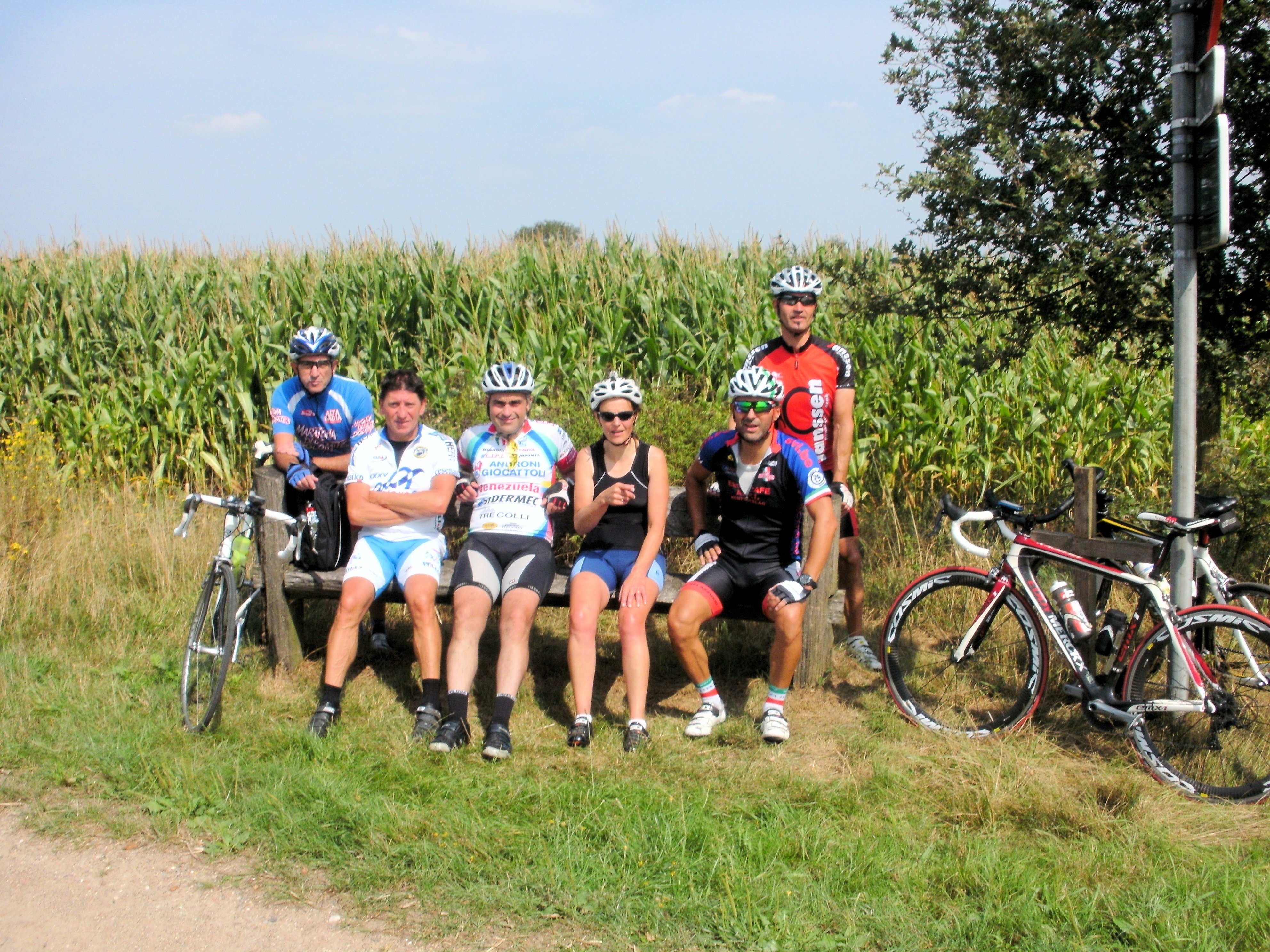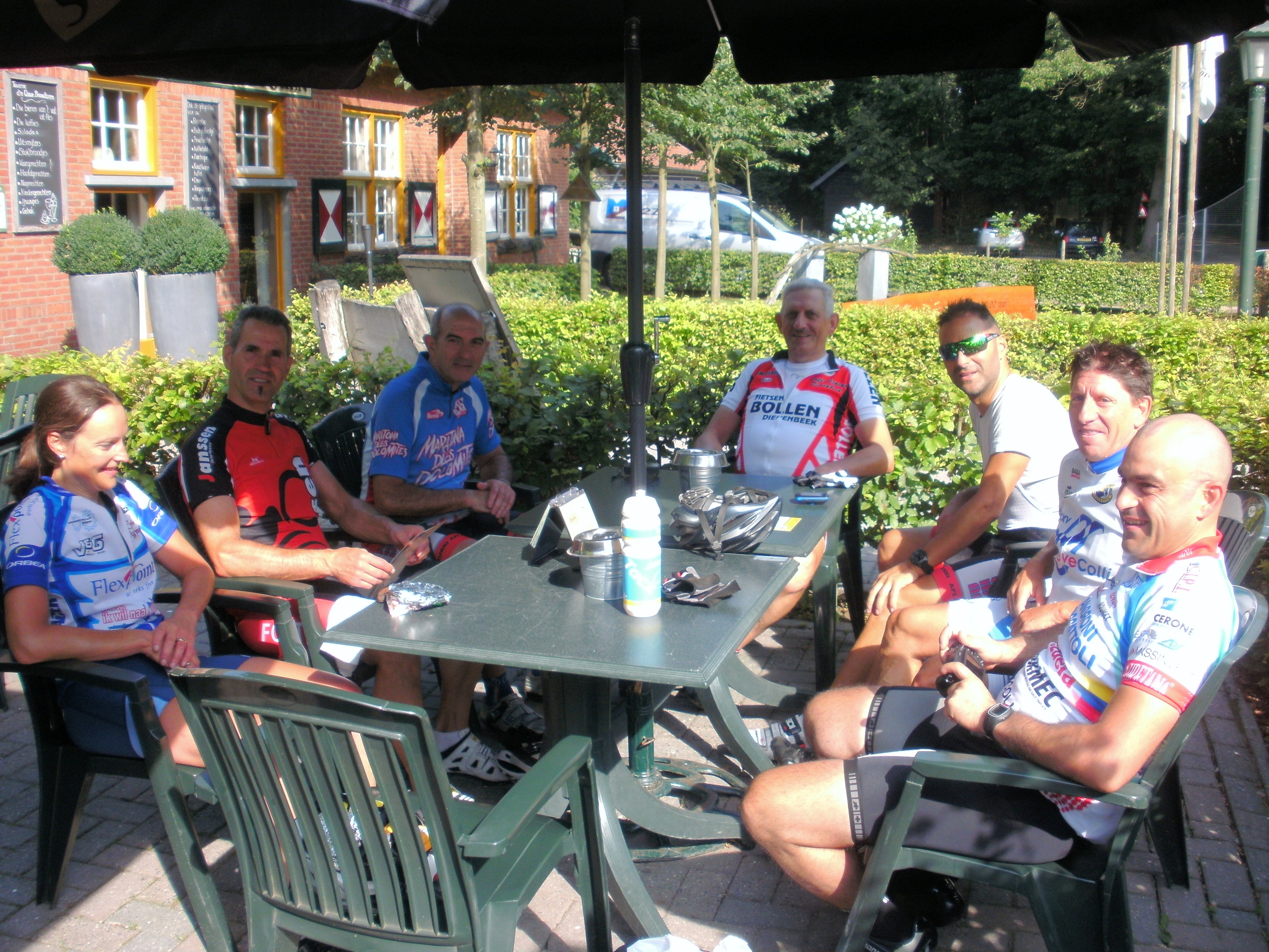 naar de maasvallei in Ivoz-Ramet (Luik). Van hier uit weer een stevige klim van ongeveer 4 Km naar Lantin waar we na 131 Km. onze derde stop hadden. Nog een kleine 30 Km. te gaan tot Munsterbilzen, waar we in Café Bloemenhof weer voldaan konden nagenieten op het terras van weer een zeer mooie fietsdag. Klik op de afbeeldingen voor meer info.