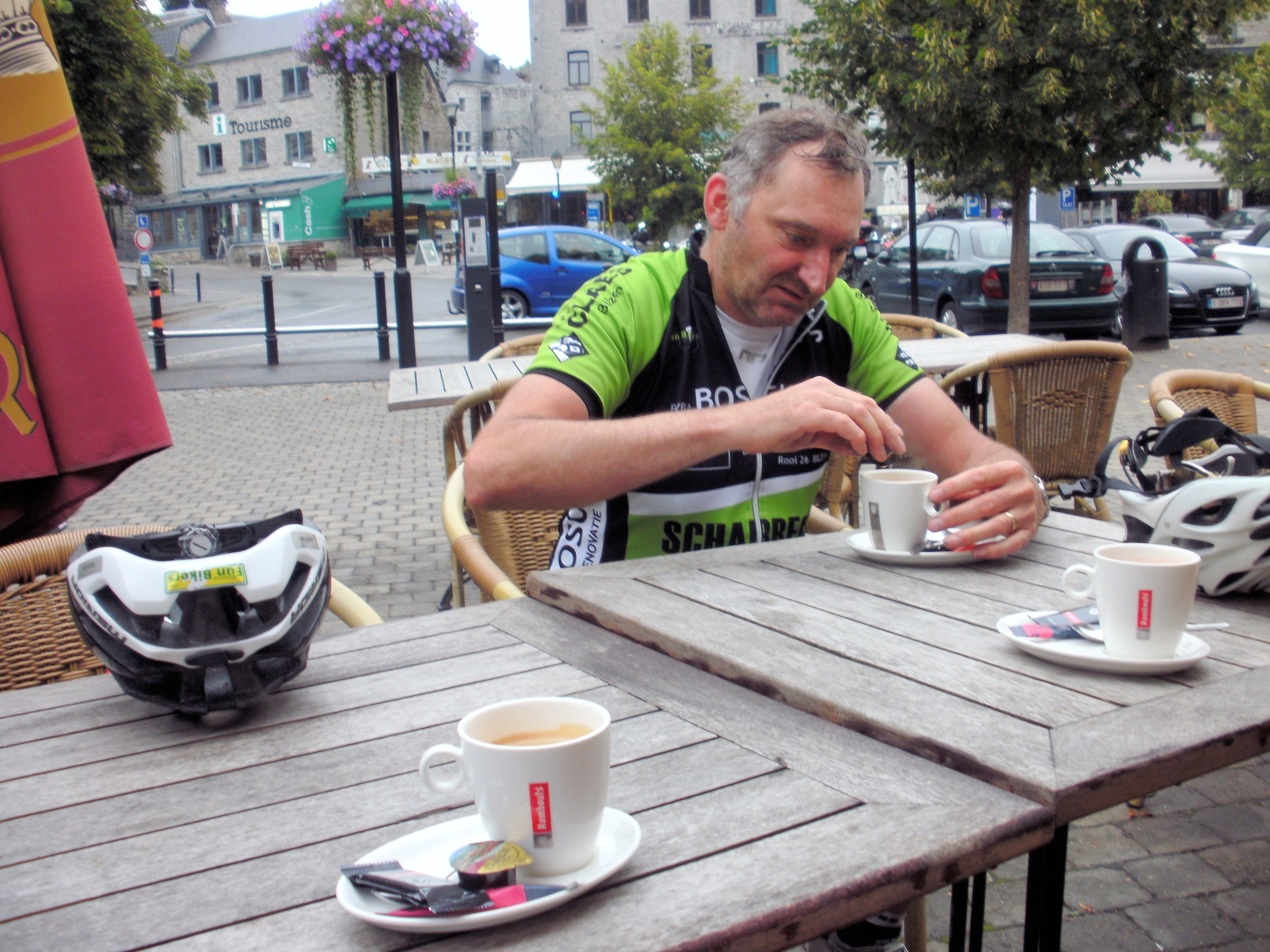 Vandaag een rit naar Durbuy 161 Km. gedaan samen met Marijke en Jee Pee.Via Rijkhoven, Hamal de afdaling van de Cahottes naar Engis. Hier begon onze eerste lange klim van de dag waar we boven in Aux-Houx na 49 Km. onze eerste stop hadden. Vanaf daar ging het voortdurend op en neer via kleine dorpjes Nandrin, Pair, Ocquir en de klim naar Borlon, waar we het hoogste punt van de dag bereikten 325 M. Dan de afdaling naar Durbuy, waar we weer de nodige spijs en drank bestelden. Vanuit Durbuy weer een lange mooie klim van ongeveer 4,5 Km. naar Longueville en verder steeds dalen en klimmen