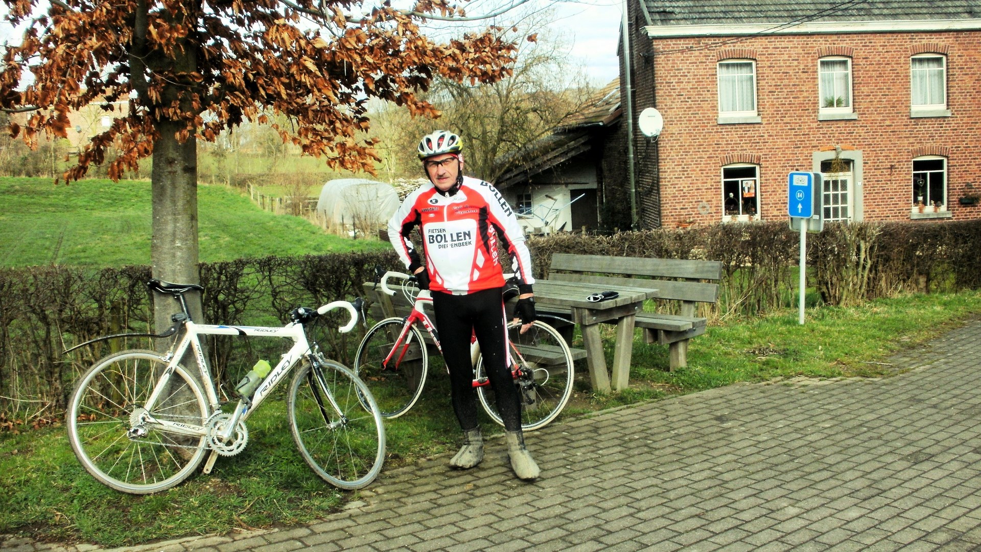 Vandaag een rit naar Nurop gedaan 73 Km. samen met Richard Vandebosch. Via Mopertingen, Vroenhoven, Maastricht naar Eckelrade (De eerste klim). Bijna boven kwam ons bekend volk vervoegen, Stijn Bollen had ook besloten om de rit van mijn blog naar Nurop te gaan rijden. Hij was twintig minuten later vanuit Munsterbilzen vertrokken maar had ons al te pakken na 25 Km. Stijn heeft enkele kilometers met ons mee gefietst, maar tegen zo een jong geweld konden Ik en Richard als gepensioneerden niet op. Stijn heeft dan de rit verder gereden op zijn tempo en Ik en Richard op ons Tempo. Ons hoogste punt van de dag (236M) was De Planck na 35 Km. In Nurop na 37 Km hebben we dan ons boterhammekes opgegeten op een bankje mooi in het zonnetje. Vandaar onze weg vervolgt richting Slenaken, van waaruit we weer een stevig klimmetje hadden richting Schilberg. Dan via Banholt, Cadier-En-Keer in dalende lijn naar Maastricht. Via Veldwezelt, Eigenbilzen terug naar Munsterbilzen, om weer na te genieten van weer een mooie rit bij Linda (Café Bloemenhof) van een lekkere koffie en een duvel. Meer moet dat niet zijn. Klik op de afbeeldingen voor meer info.