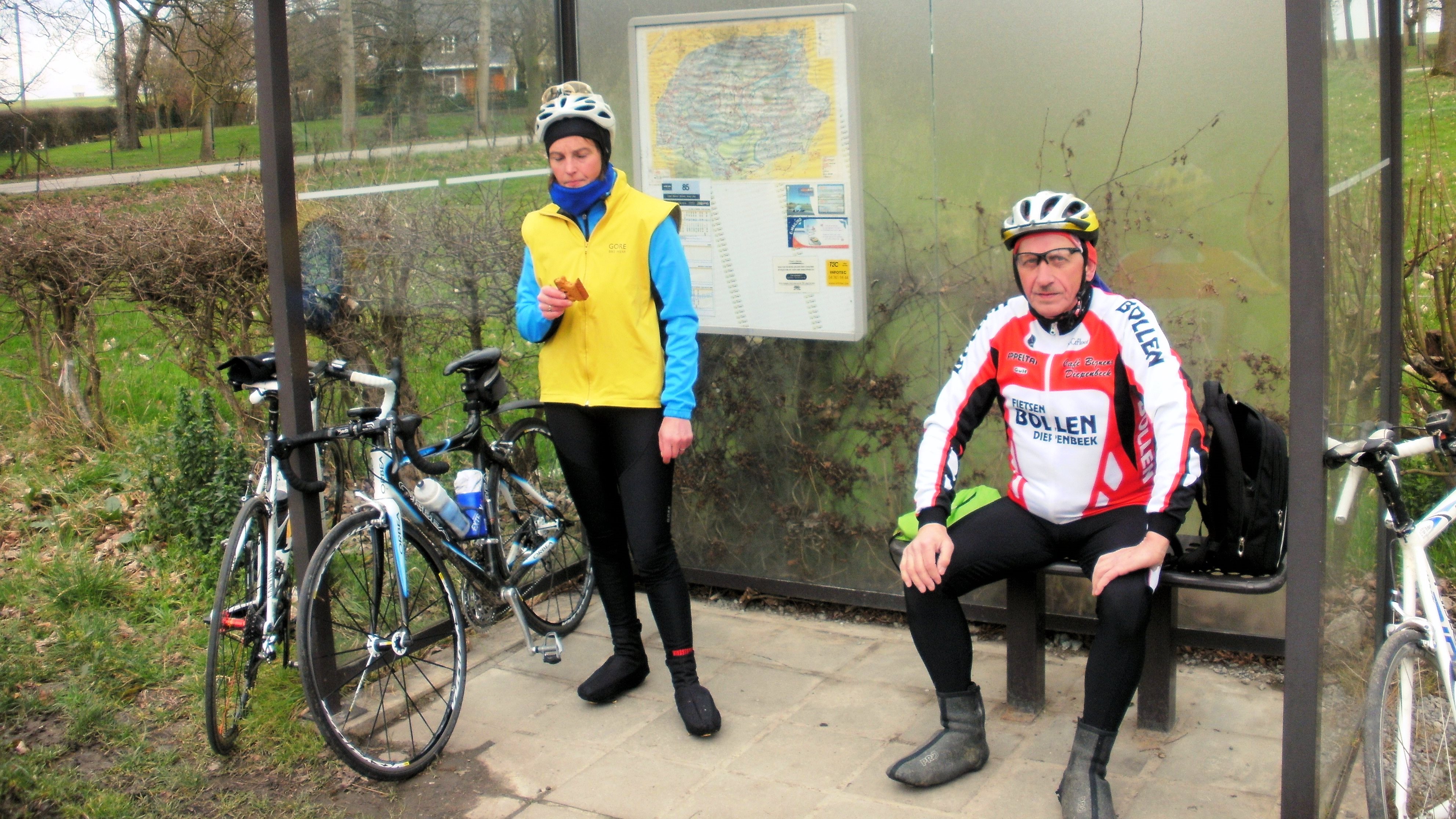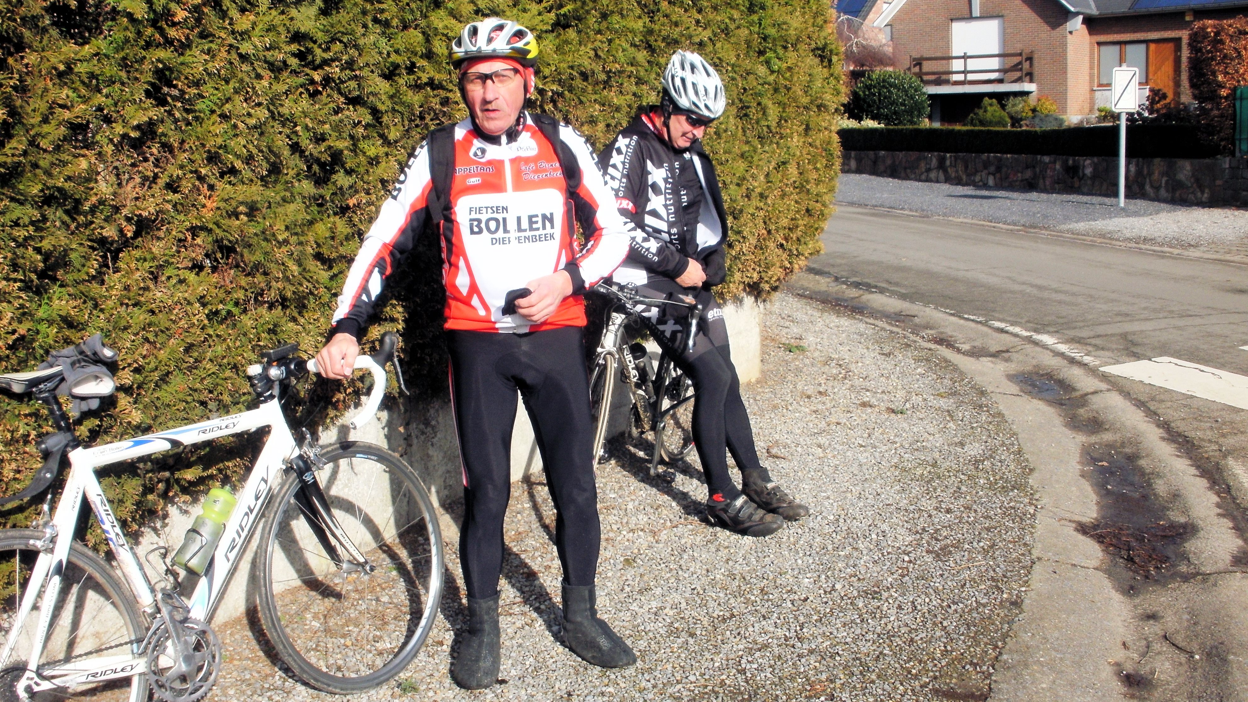 Vandaag een rit naar Catsop (NL) 66 Km. Samen met Bruno P., Johan G., Johan H., Jos H., Luc W., Richard V., en Sebbe D.. Vertrokken om 9 uur aan de sporthal te Munsterbilzen. Via Hoelbeek, Eigenbilzen, Gellik naar Herbricht, waar we langs de maas konden genieten van de mooie uitzichten. Dan in Kotem de Maas overgestoken richting Nederland via het fietspad langs de E314. Via Elsloo naar Geulle waar we aan de eerste en enige beklimming van de dag begonnen (Slingerberg). Tijdens de beklimming na enkele honderden meters had Luc W. dikke materiaalpech, hij trapte zo maar zijn derailleur der vanaf. Die man kent toch echt niet zijn krachten als hij bergop rijd, maar Luc heeft dat weer keurig opgelost, derailleur der vanaf ketting korter gemaakt en weer verder. Dan via Catsop naar Stein waar we aan de andere kant van de E314 weer terug Belgie binnen fietsten. Al bij al weer een zeer mooie en geslaagde rit. Klik op de afbeeldingen voor meer info en links.