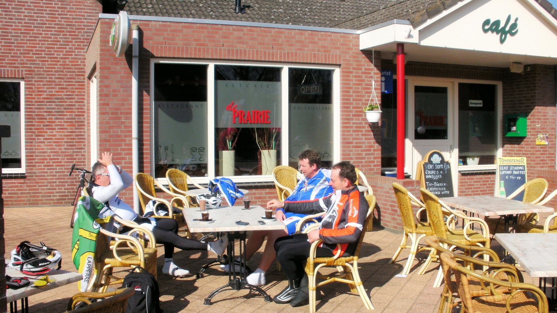 Vandaag een rit naar Ell (NL) 113 Km gedaan samen met Dirk Potargent, Luc Wolfs en Richard Vandebosch. Een vlakke rit via heel rustige wegen, met een terras stop in Taverne De Prairie in Ell. Hier konden we in het zonnetje genieten van een lekkere koffie en een lekker biertje. Alweer genoten van een mooie rit met tof gezelschap. Meer moet dat niet zijn. Klik op de afbeeldingen voor meer info.