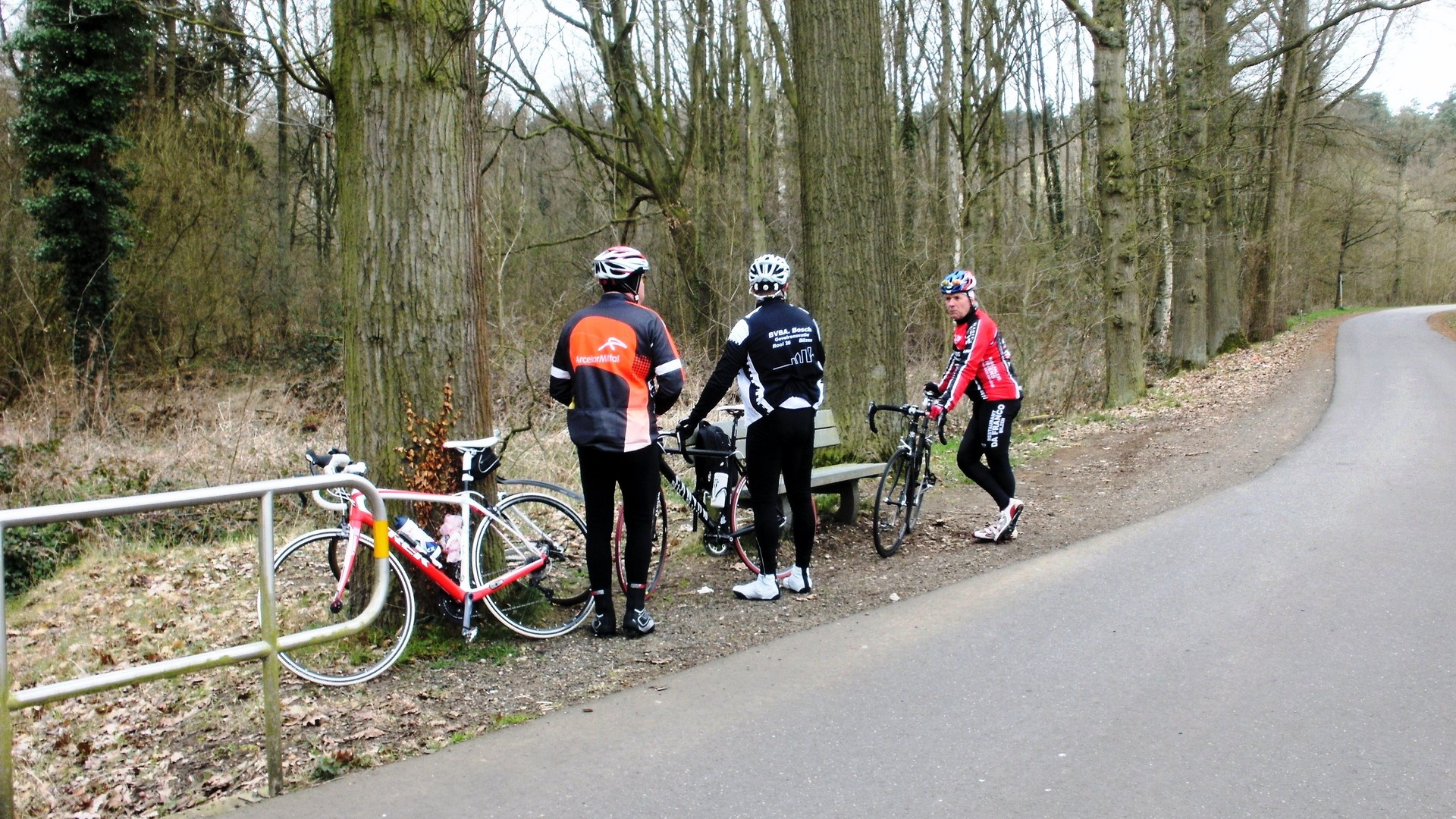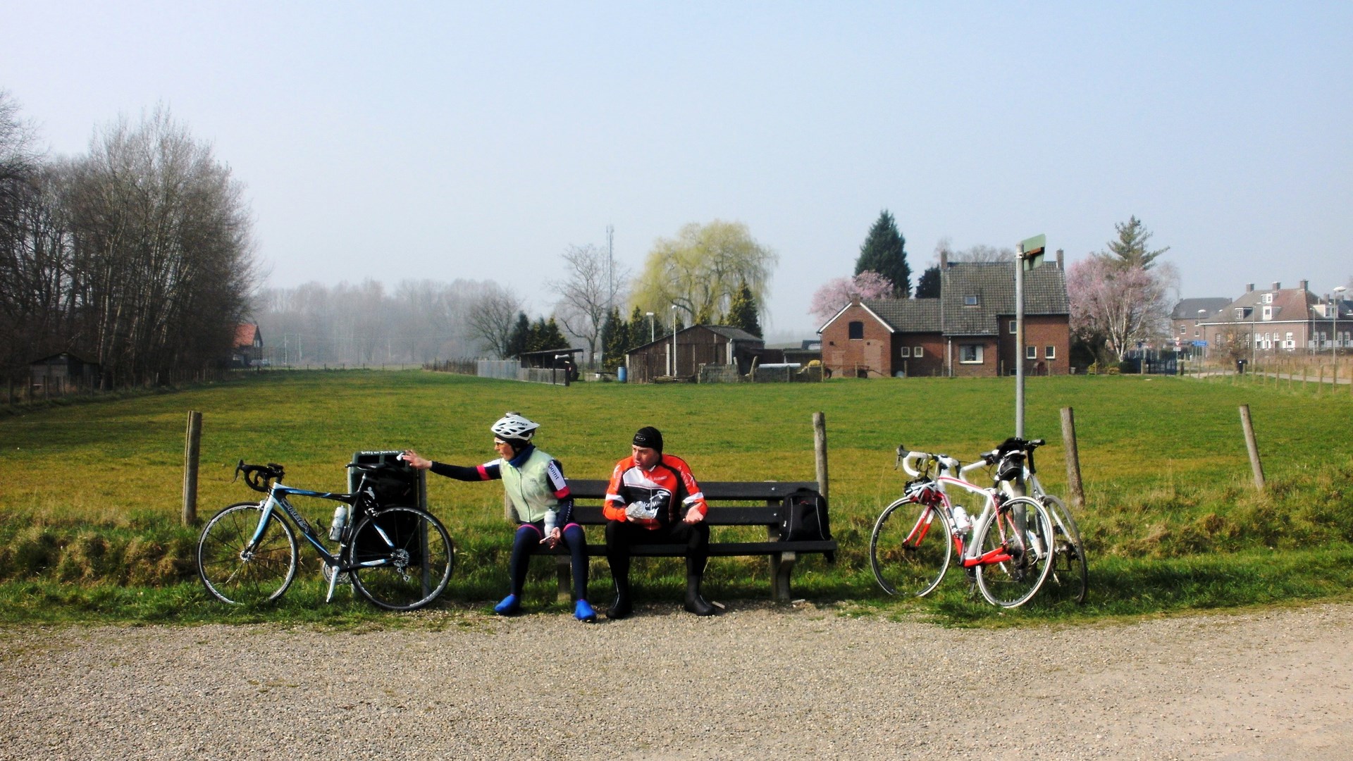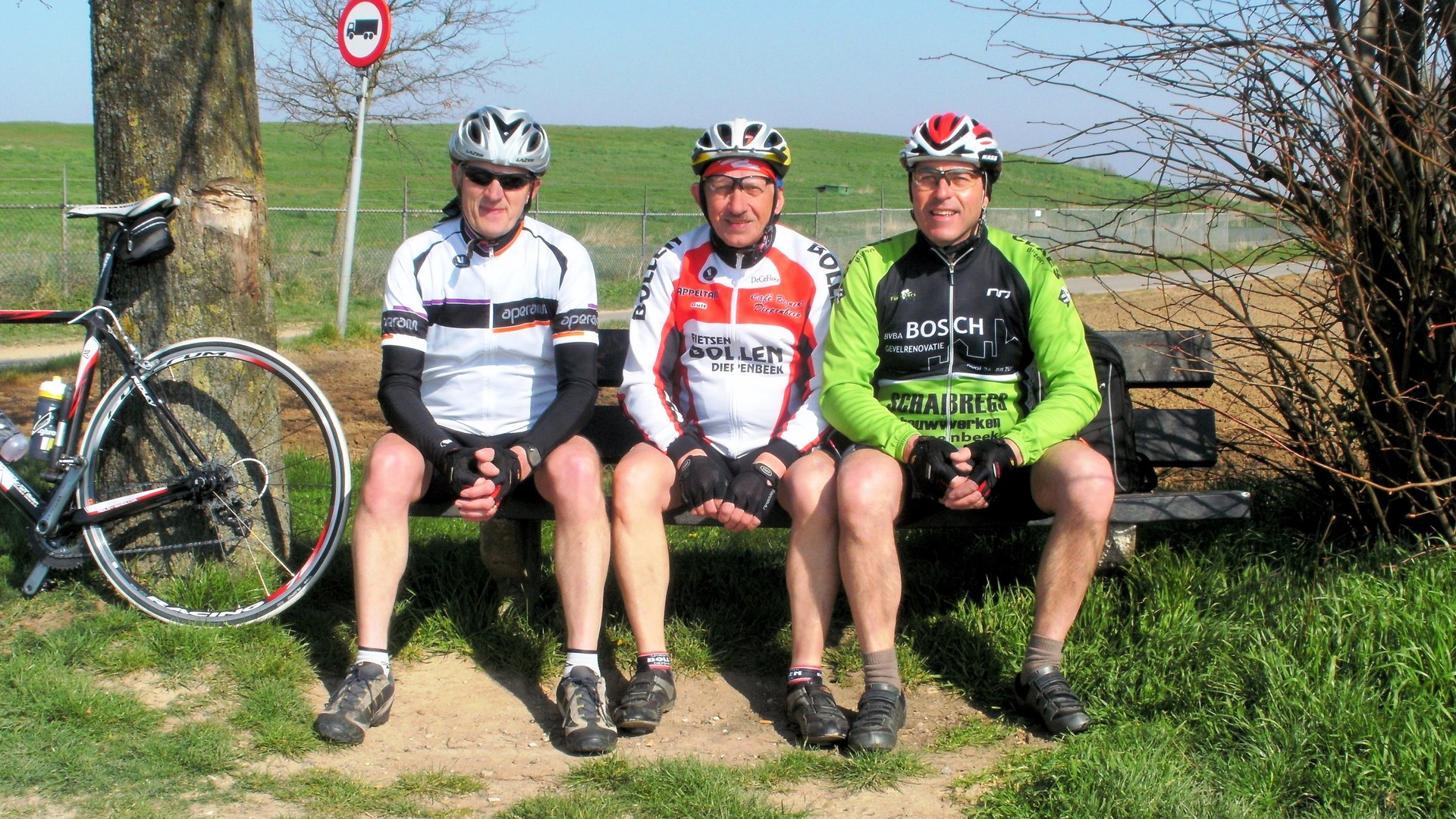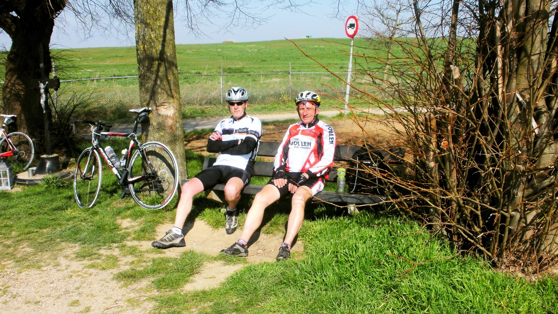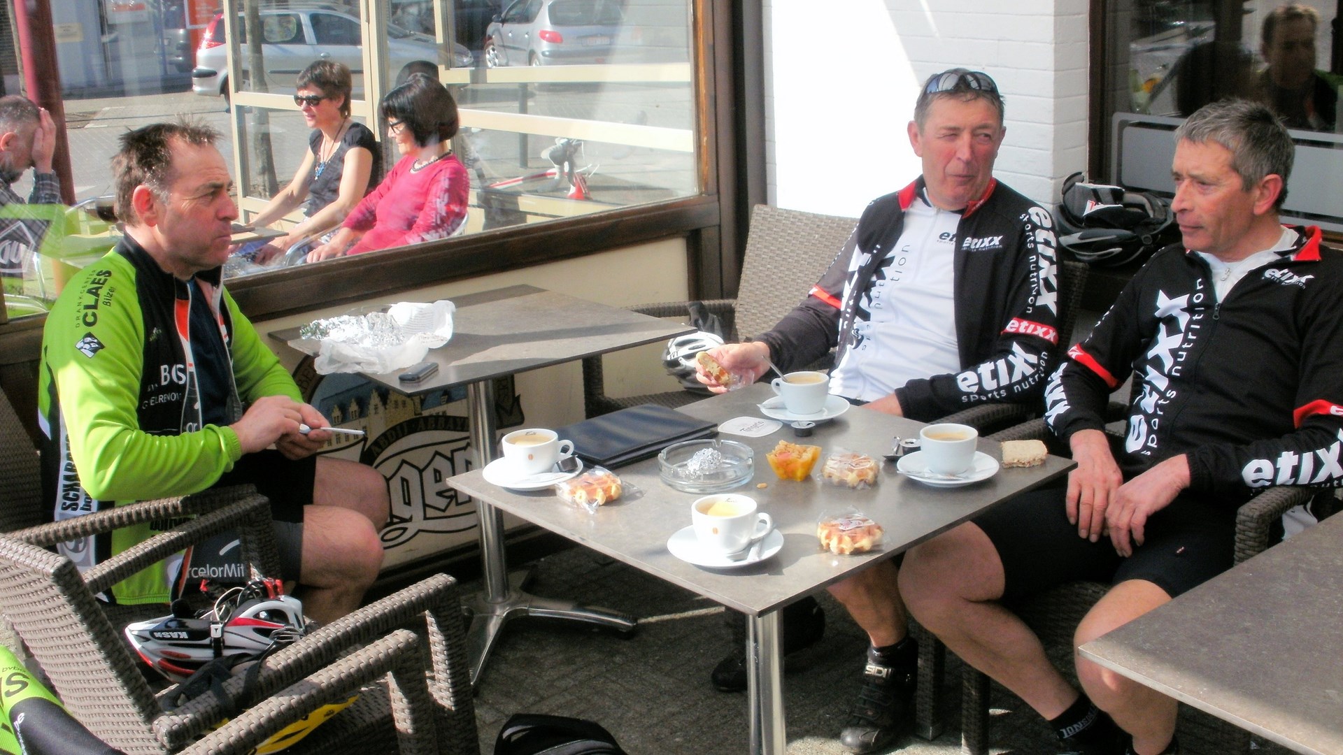 Vandaag een rit naar Henri-Chapelle 101 Km. gedaan samen met Jean Pierre Jacobs, Joeri Verhaegen en Luc Wolfs. Via Waltwilder, Rosmeer, Vlijtingen, Zichen naar Eben Emael, waar we aan onze eerste klim van de dag begonnen (Lanaye). Dan via Moelingen, Berneau, Warsage naar Neufchateau, onze tweede pittige klim van de dag. Dan in dalende lijn naar Val-Dieu waar we na 41 Km onze eerste stop hadden om wat te eten. Dan verder via Froidthier naar Henri-Chapelle waar we weer via een pittige klim met prachtige uitzichten