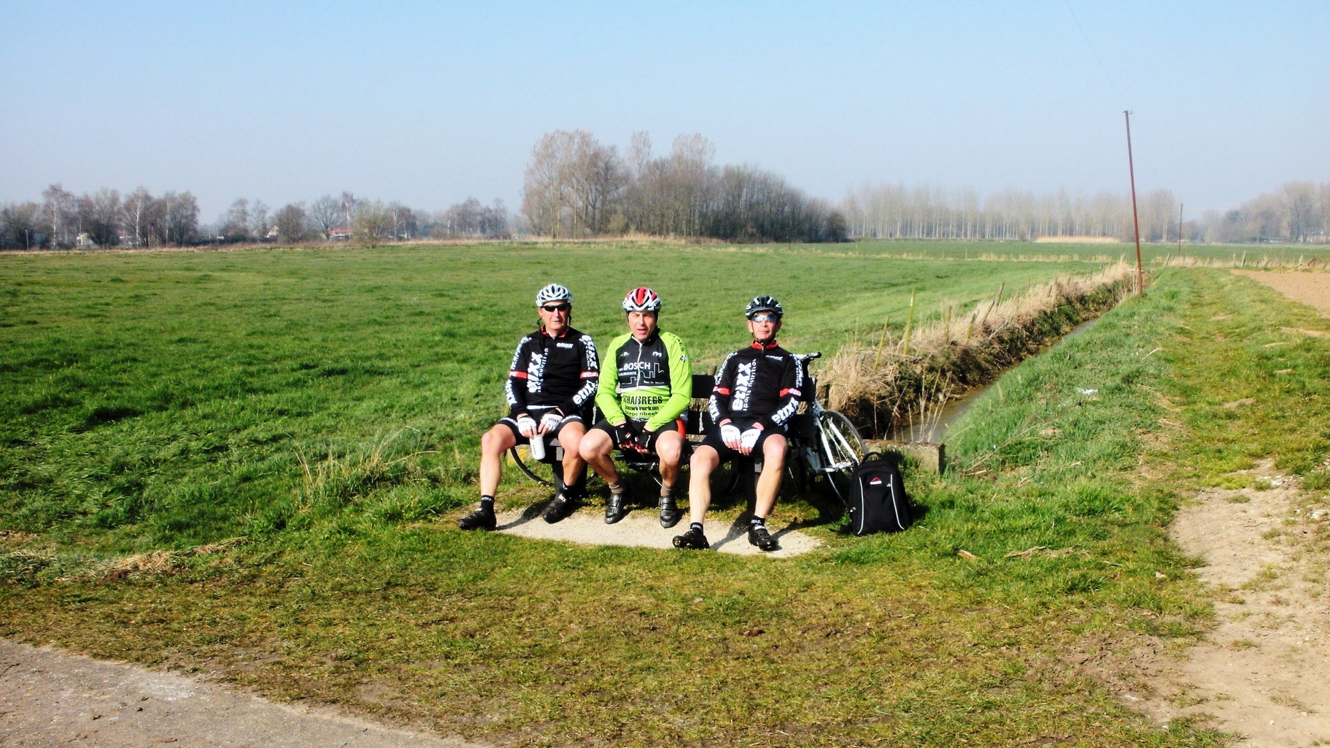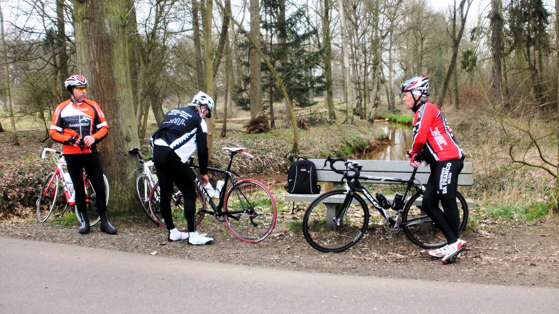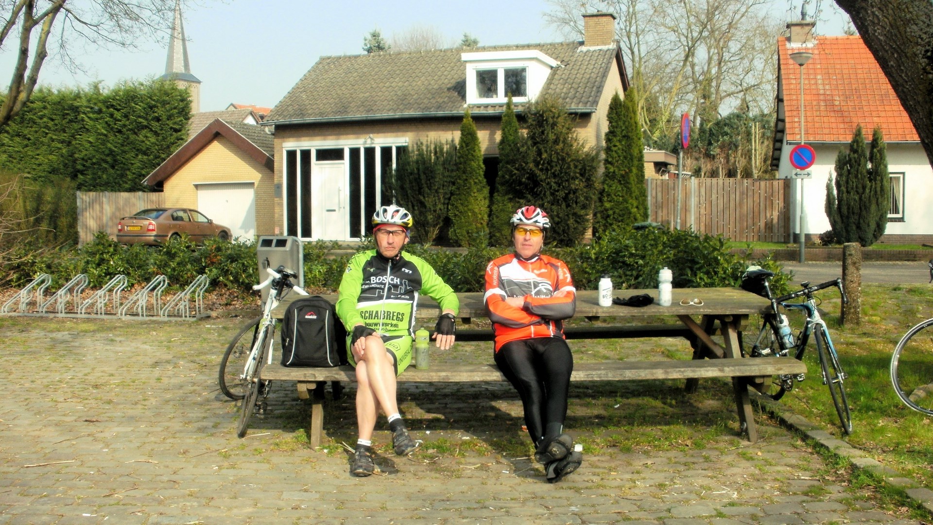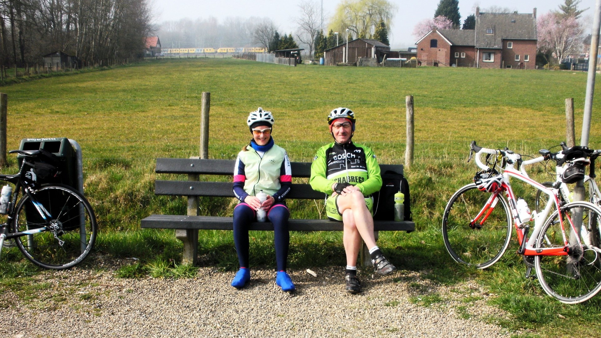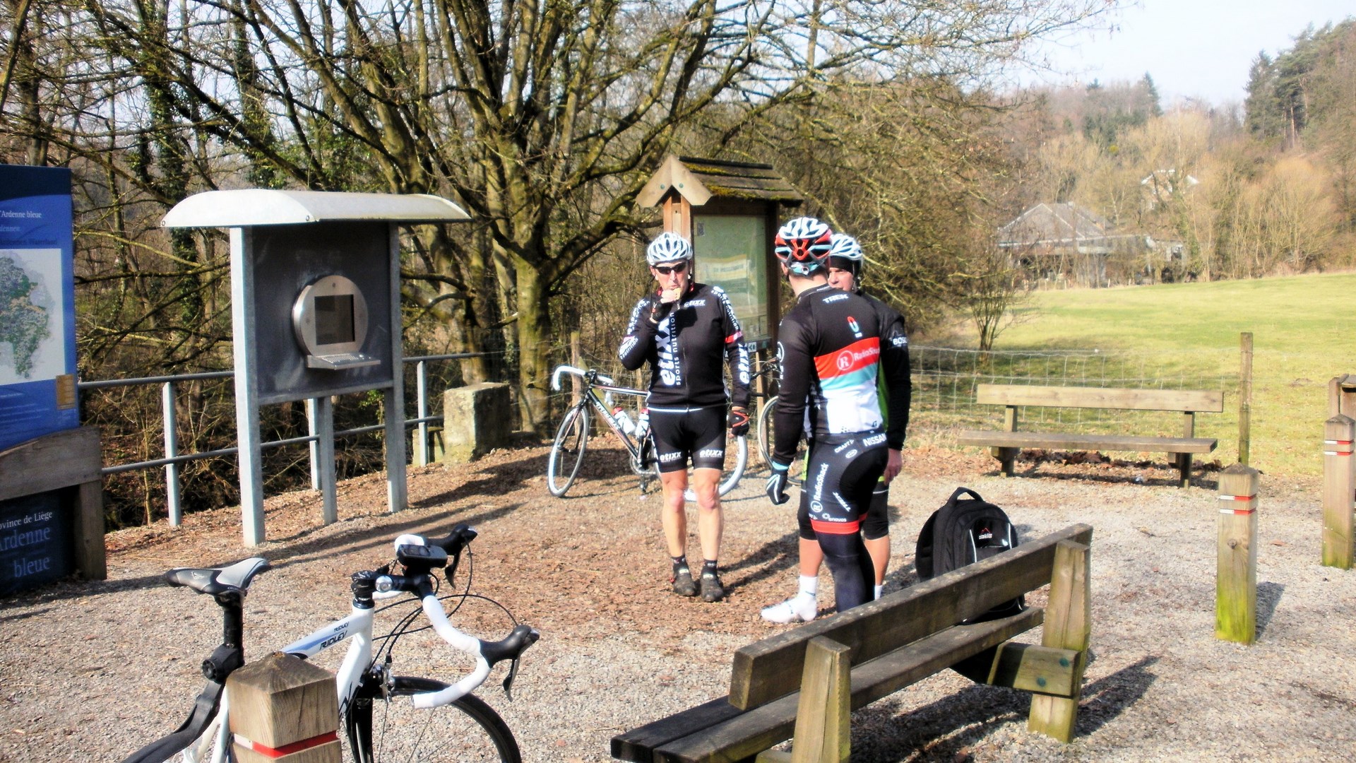 Vandaag een rit naar Henri-Chapelle 101 Km. gedaan samen met Jean Pierre Jacobs, Joeri Verhaegen en Luc Wolfs. Via Waltwilder, Rosmeer, Vlijtingen, Zichen naar Eben Emael, waar we aan onze eerste klim van de dag begonnen (Lanaye). Dan via Moelingen, Berneau, Warsage naar Neufchateau, onze tweede pittige klim van de dag. Dan in dalende lijn naar Val-Dieu waar we na 41 Km onze eerste stop hadden om wat te eten. Dan verder via Froidthier naar Henri-Chapelle waar we weer via een pittige klim met prachtige uitzichten