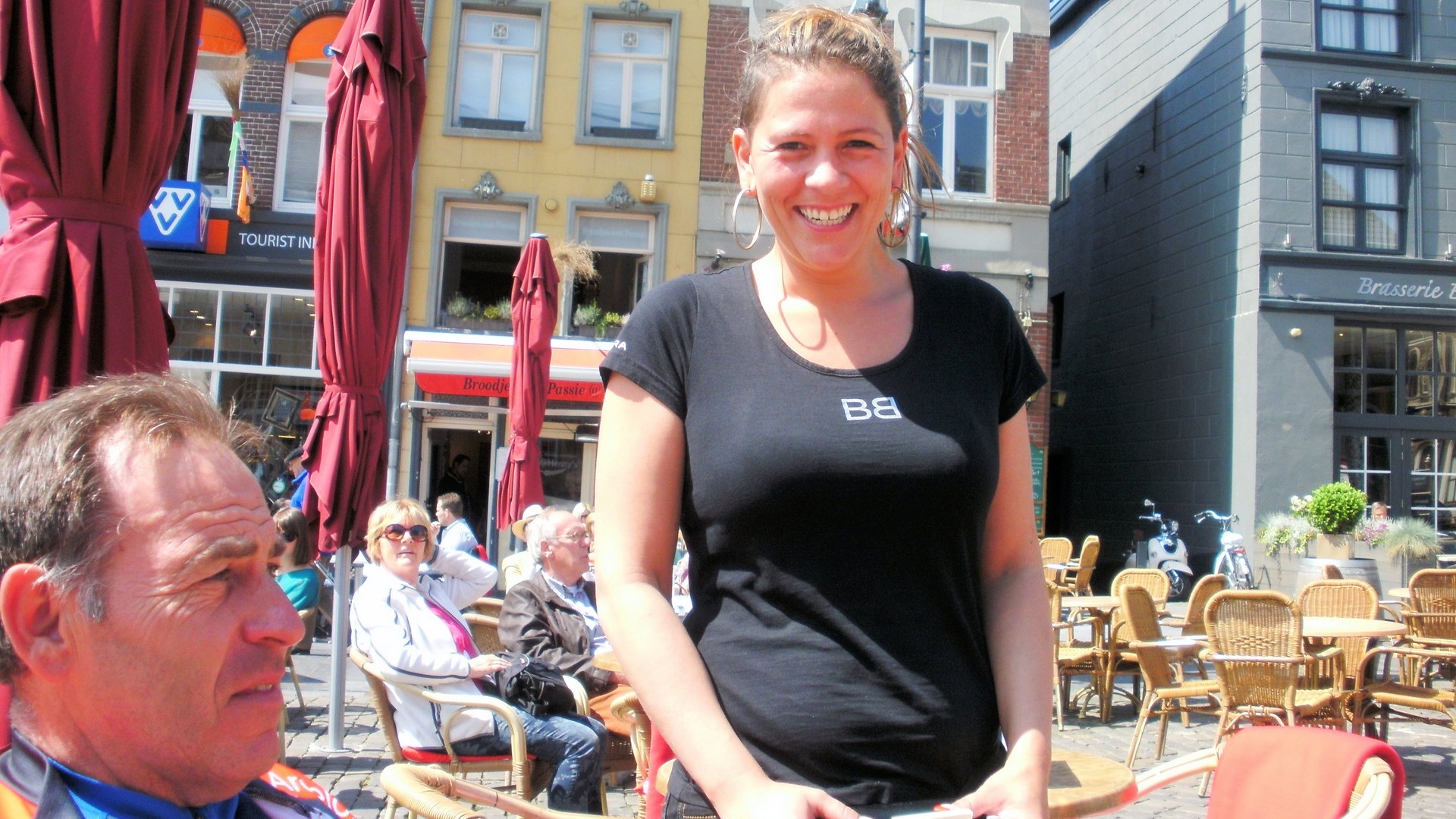 Vandaag een rit naar Roermond 128 Km. gedaan samen met Richard Vandebosch. Mooie vlakke rit met een eerste stop in Sint Joost na 52 Km. In Roermond na 67 Km op de markt weer genoten op een zonnig terras van een koffie en een Lente Bok bier. Richard had wat te weinig boterhammen mee en heeft een broodje met spek en eieren besteld. We werden weer zeer goed bediend door een heel lieftallige juffrouw. Ze was wel degelijk nog juffrouw. Want Richard, slim als hij is vroeg aan haar of dat gebouw achter ons het stadhuis was.