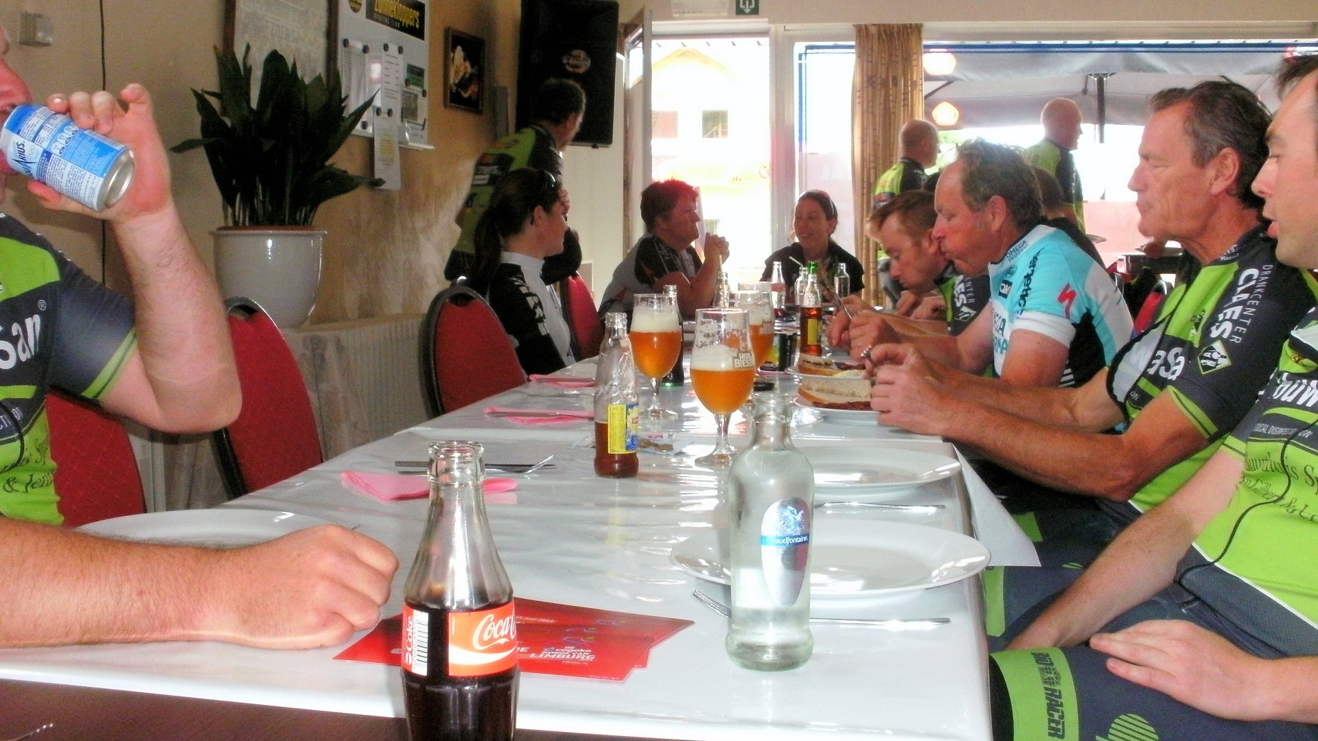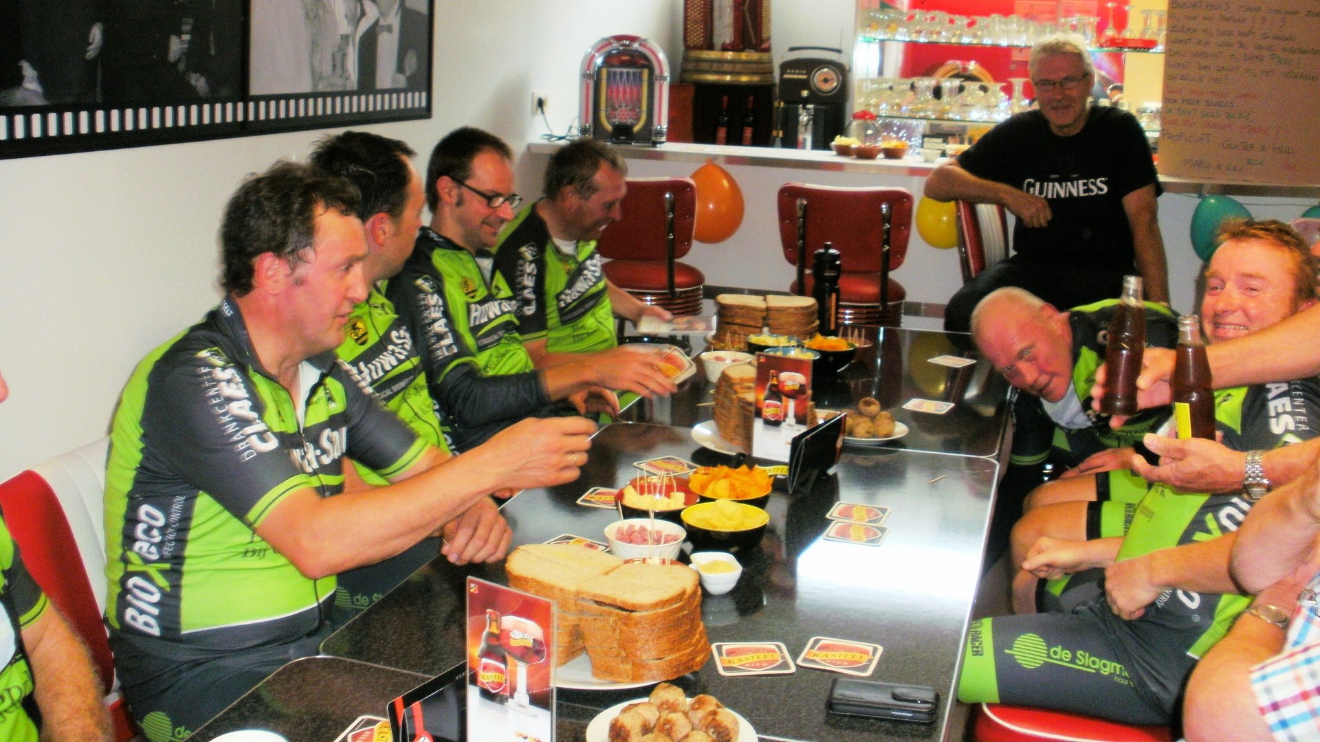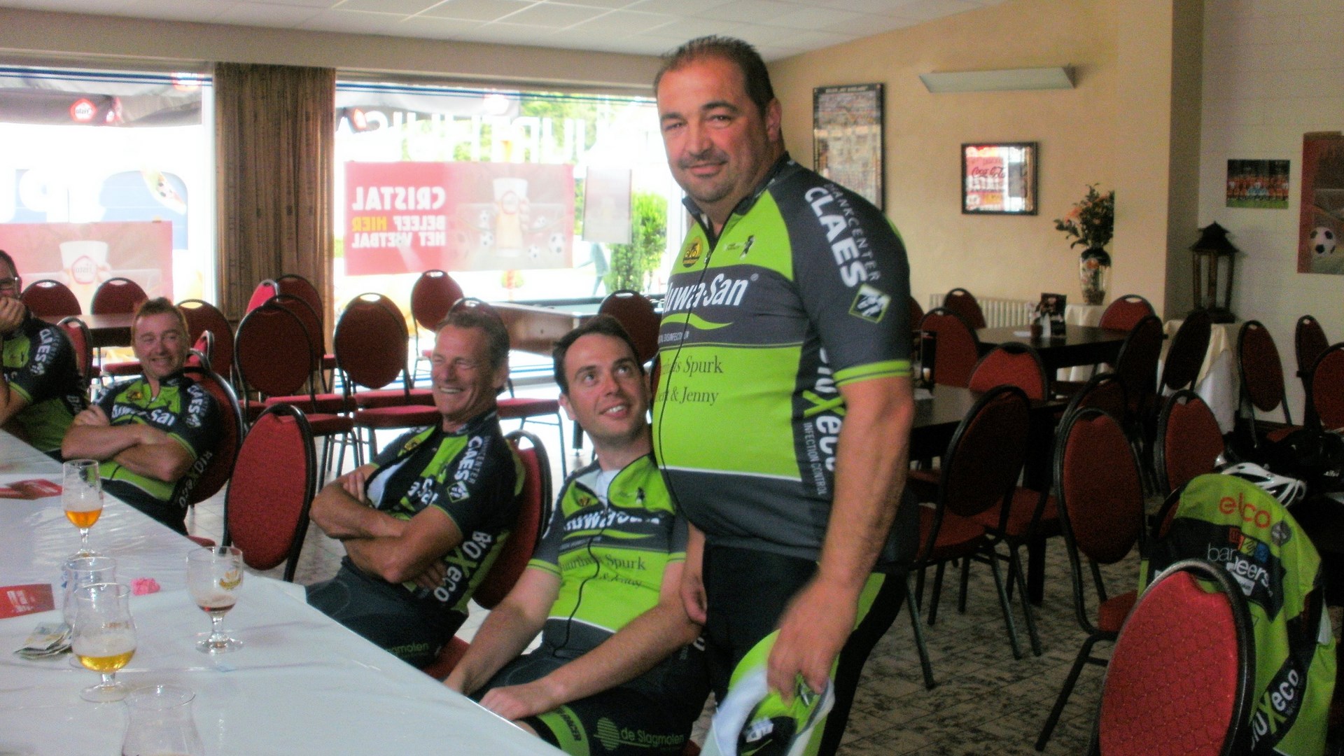 Vandaag de clubrit van WTC De Zonnekloppers naar Berg-Aan-De-Maas(NL) 74 Km gedaan. Met 17 vertrekkers (2 dames en 15 heren) waren we vandaag. Weer een mooie vlakke rit met een stukje langs de Maas op Nederlandse bodem. Was ook weer een gezellige afsluiter bij Jenny en Gilbert in Het Buurthuis. Het verslag van deze rit zal weer worden geschreven door Geert Martin. Te bekijken op de website van WTC De Zonnekloppers. Klik op de afbeeldingen voor meer info.