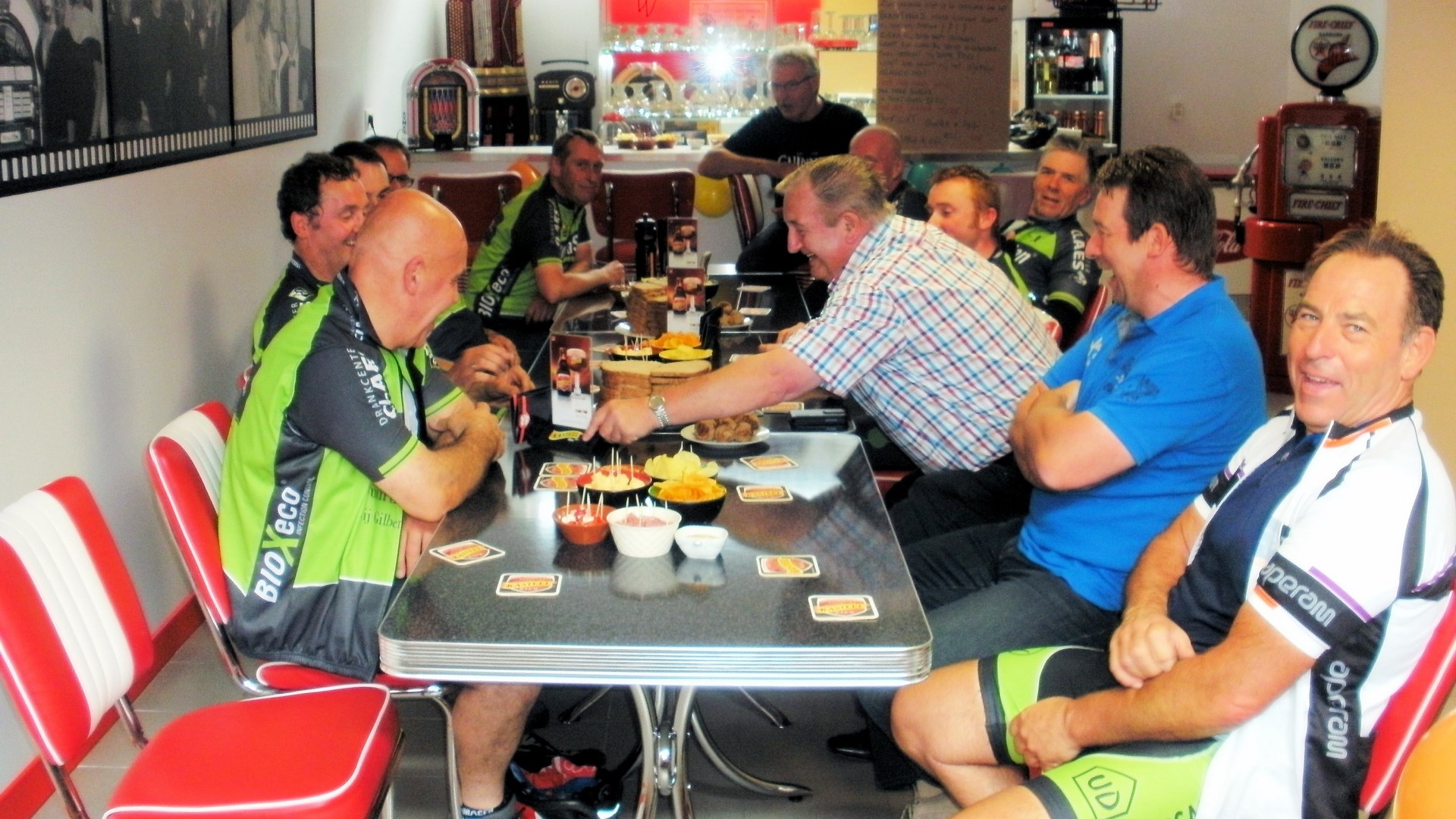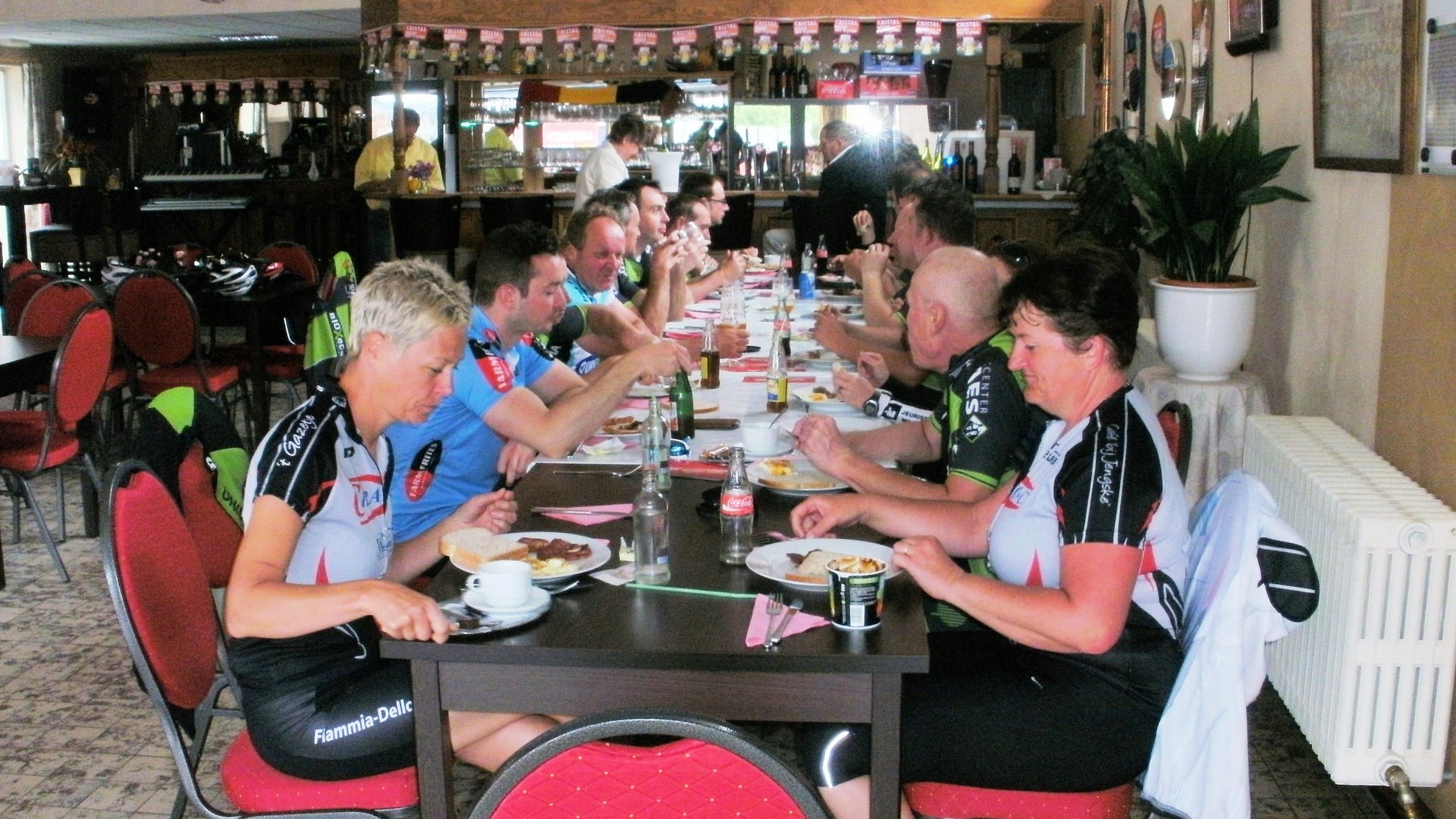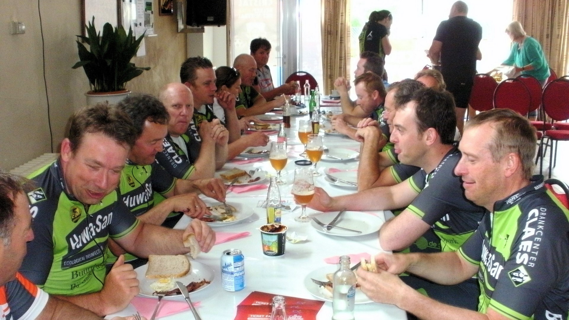 Vandaag de clubrit van WTC De Zonnekloppers naar Berg-Aan-De-Maas(NL) 74 Km gedaan. Met 17 vertrekkers (2 dames en 15 heren) waren we vandaag. Weer een mooie vlakke rit met een stukje langs de Maas op Nederlandse bodem. Was ook weer een gezellige afsluiter bij Jenny en Gilbert in Het Buurthuis. Het verslag van deze rit zal weer worden geschreven door Geert Martin. Te bekijken op de website van WTC De Zonnekloppers. Klik op de afbeeldingen voor meer info.