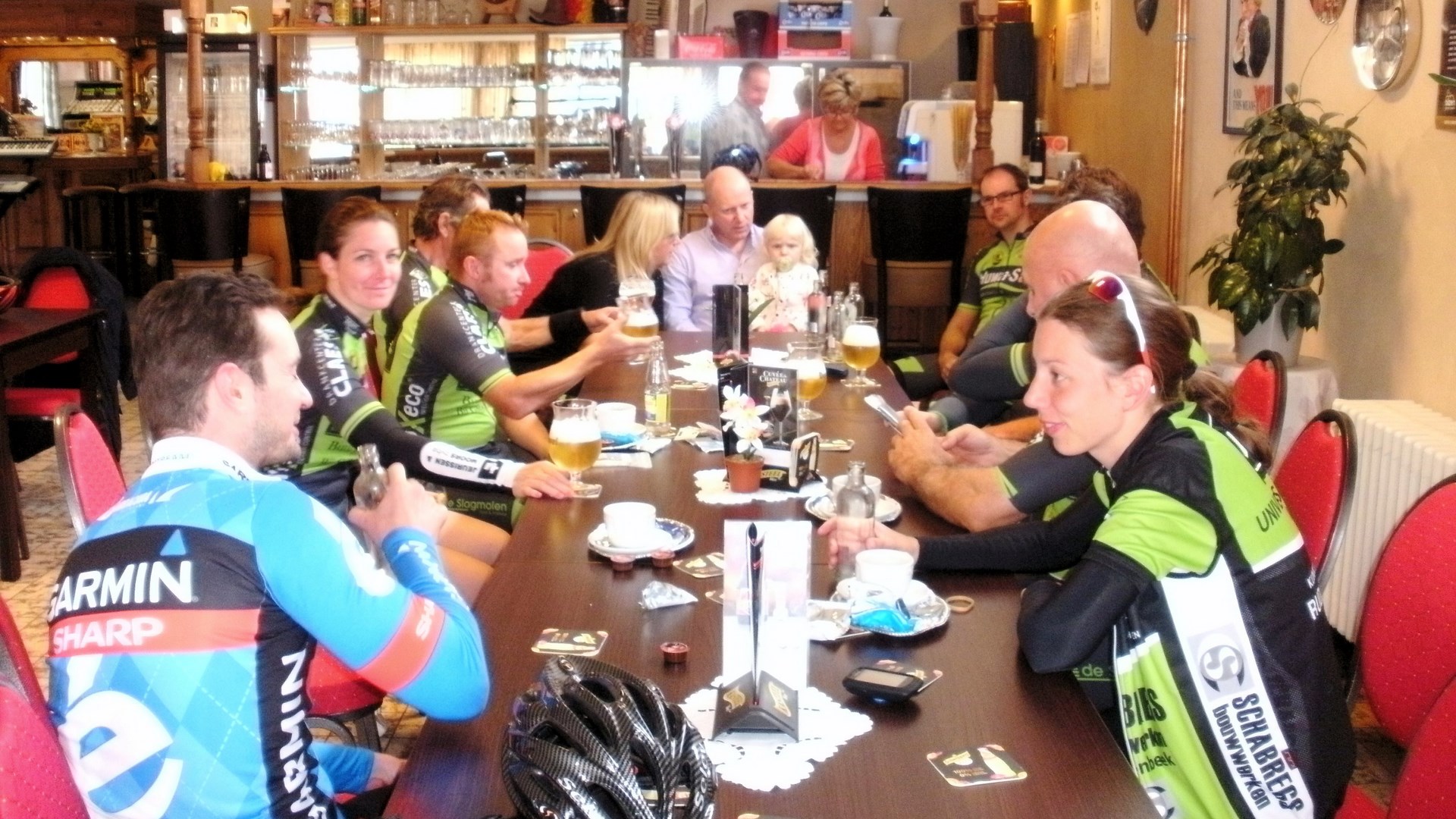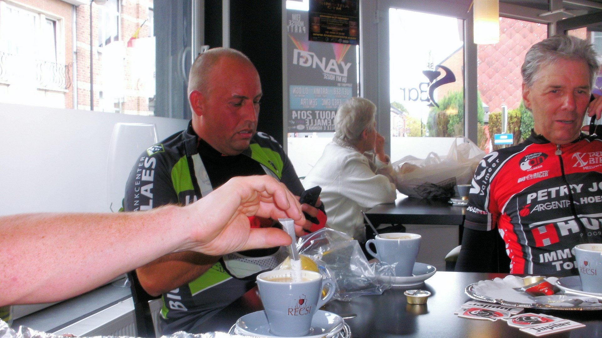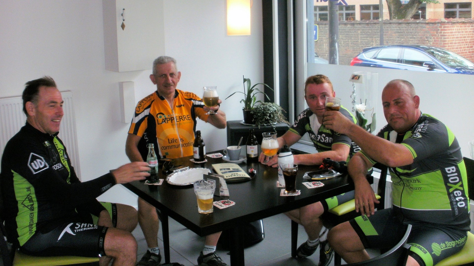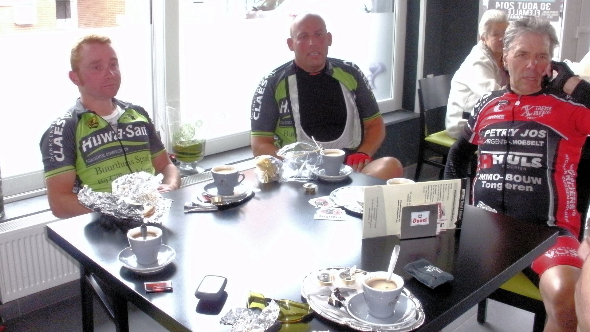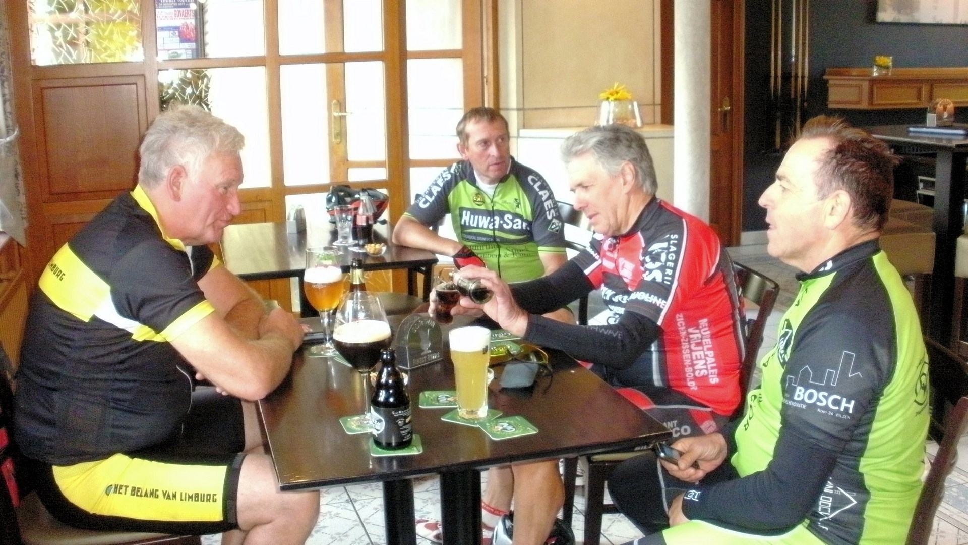 Vandaag een rit naar Engis 96 Km gedaan samen met Jurgen Vanhees, Kurt Briers, Richard Vandebosch en Rik Coopmans. Weer een mooie rit met een pittige klim naar Stockay, waar we een stop hebben ingelast voor een koffie en een biertje. Daarna nog een gezellige afsluiter gehouden in Cafè Welkom bij Elske in Bilzen. En ja vandaag zijn de foto’s van koffie en duvel gelukt! Klik op de afbeeldingen voor meer info.