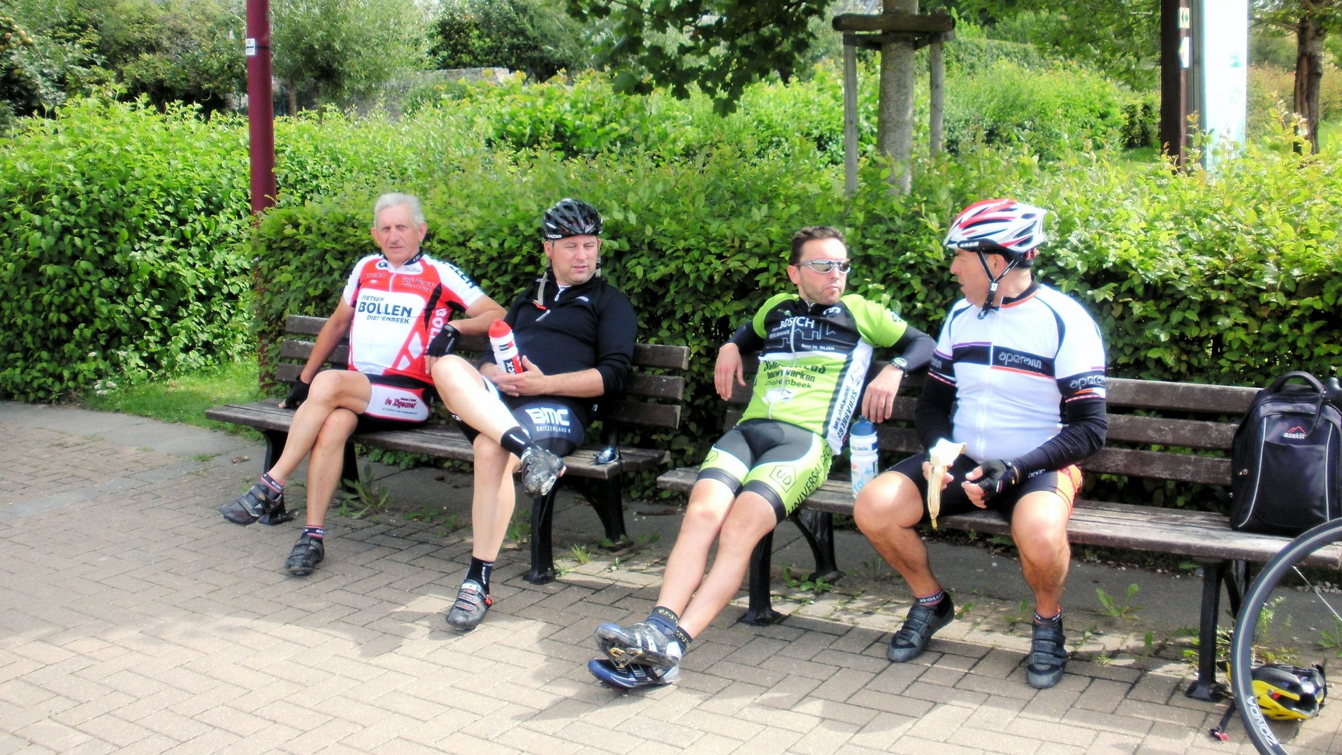 Vandaag een rit naar Lemiers (NL) 93 Km gedaan samen met Geert Martin, Ludo Boelen, Richard Vandebosch en Rik Coopmans. Weer een mooie pittige rit met een dikke 800 Hm. op 93 Km. En voor sommigen weer wat nieuwe onbekende hellingen (Loorberg, Camerig, Orsbach en ik vergeet er nog enkele). Iedereen toch weer ferm genoten van een prachtige rit, mooi weer en een gezellige afsluiter bij Linda in Cafè Bloemenhof te Munsterbilzen. Jammer de foto’s met Duvel op tafel alweer mislukt. Voor de mensen die vrij hebben zeker niet twijfelen om de volgende keer eens mee te gaan. Klik op de afbeeldingen voor meer info.