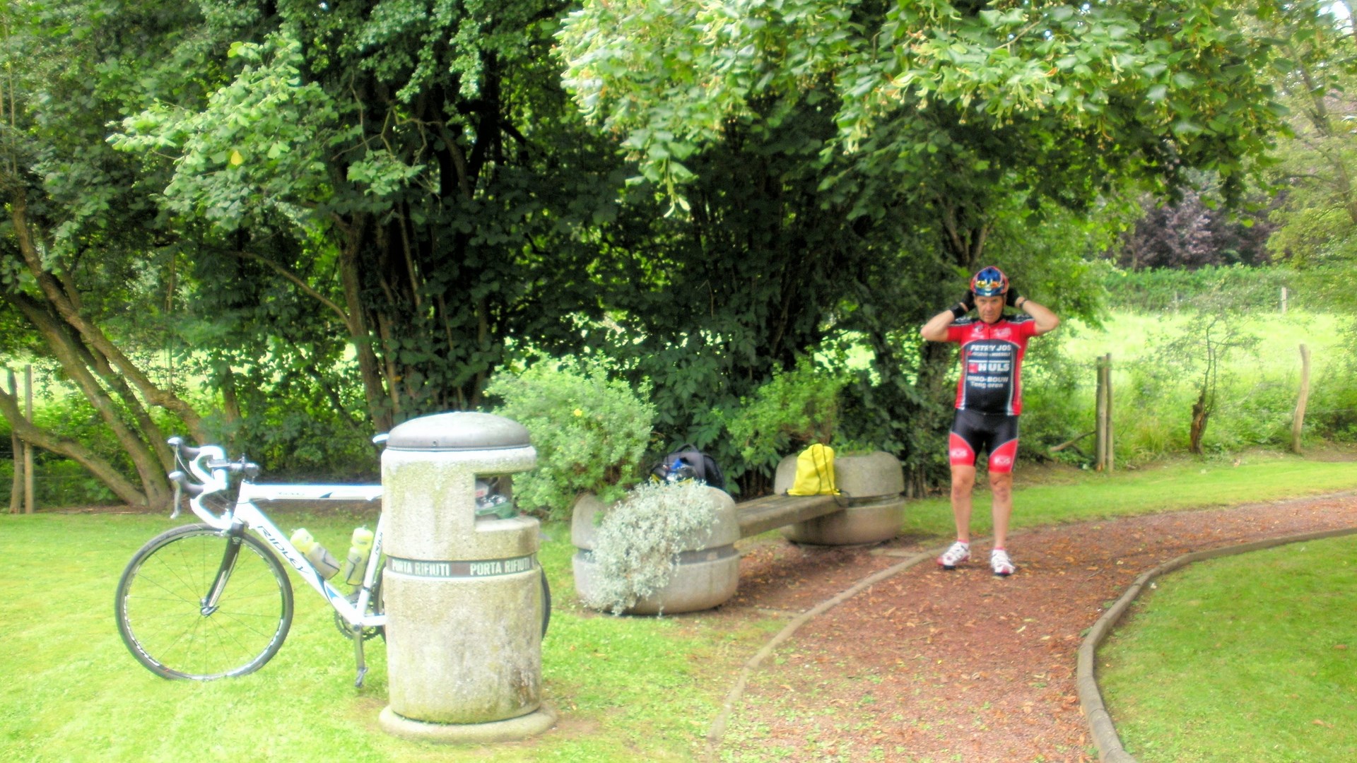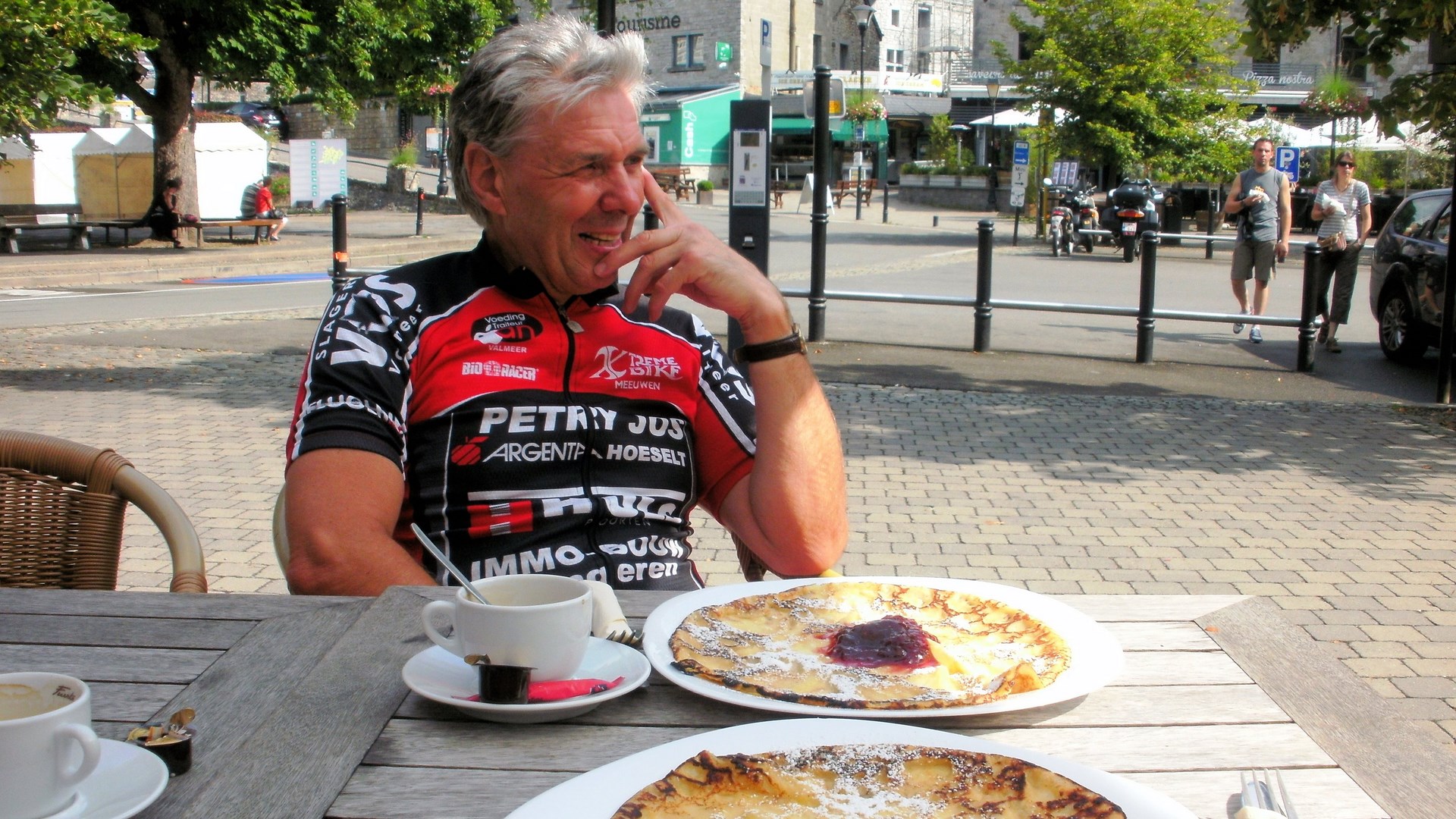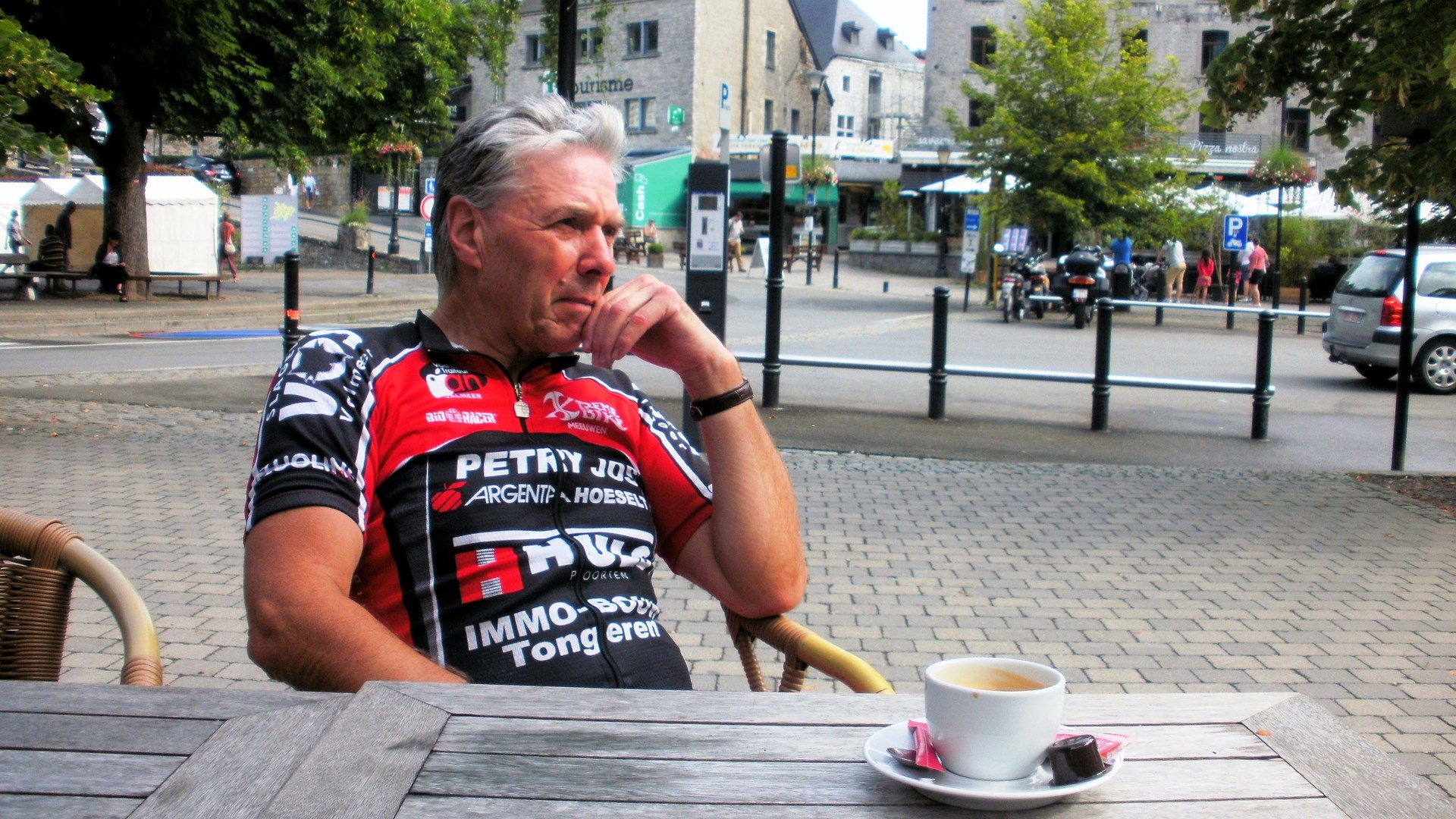 Vandaag een rit naar Durbuy 160 Km gedaan samen met Rik Coopmans. Mooi droog weer gehad en in het zonnetje op het terras in Durbuy gezeten. Op de terugweg hebben we het nog droog kunnen houden tot op de klim naar Cahottes. Daar hadden we onze derde stop, terwijl we onze laatste boterhammekes aan het verorberen waren begon het toch serieus te druppelen. De dreigende lucht voorspelde niet veel goeds, voor de zekerheid toch maar onze regenjas aangetrokken. We hebben de laatste 50 Km dan ook continu regen gehad.