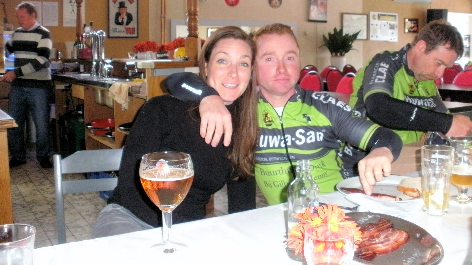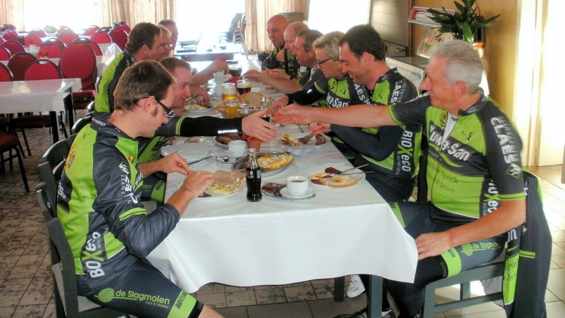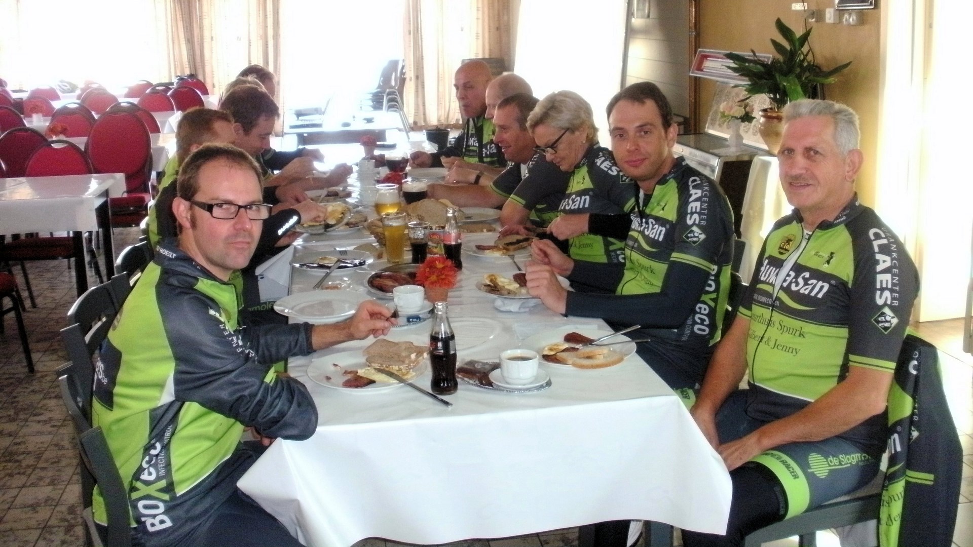 Vandaag alweer de laatste clubrit van WTC De Zonnekloppers van het seizoen gedaan (boemelrit rond Bilzen). Met een ontvangst bij onze sponsor “Drankcenter Claes” in Eik voor een drankje en een hapje. Nadien weer een meer dan gezellige afsluiter bij Jenny en Gilbert in Het Buurthuis. Met een traktatie op spek en ei van kapster Ann Hensen. Het verslag van deze rit zal weer worden geschreven door Geert Martin.Te bekijken op de website van WTC De Zonnekloppers. Klik op de afbeeldingen voor meer info. Meer foto’s hier.