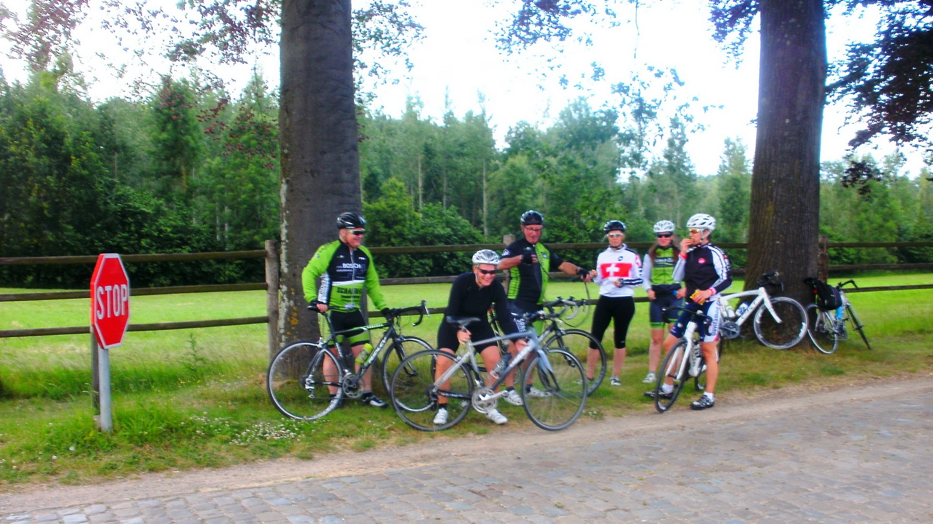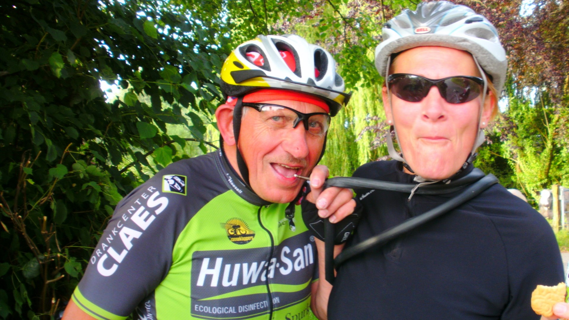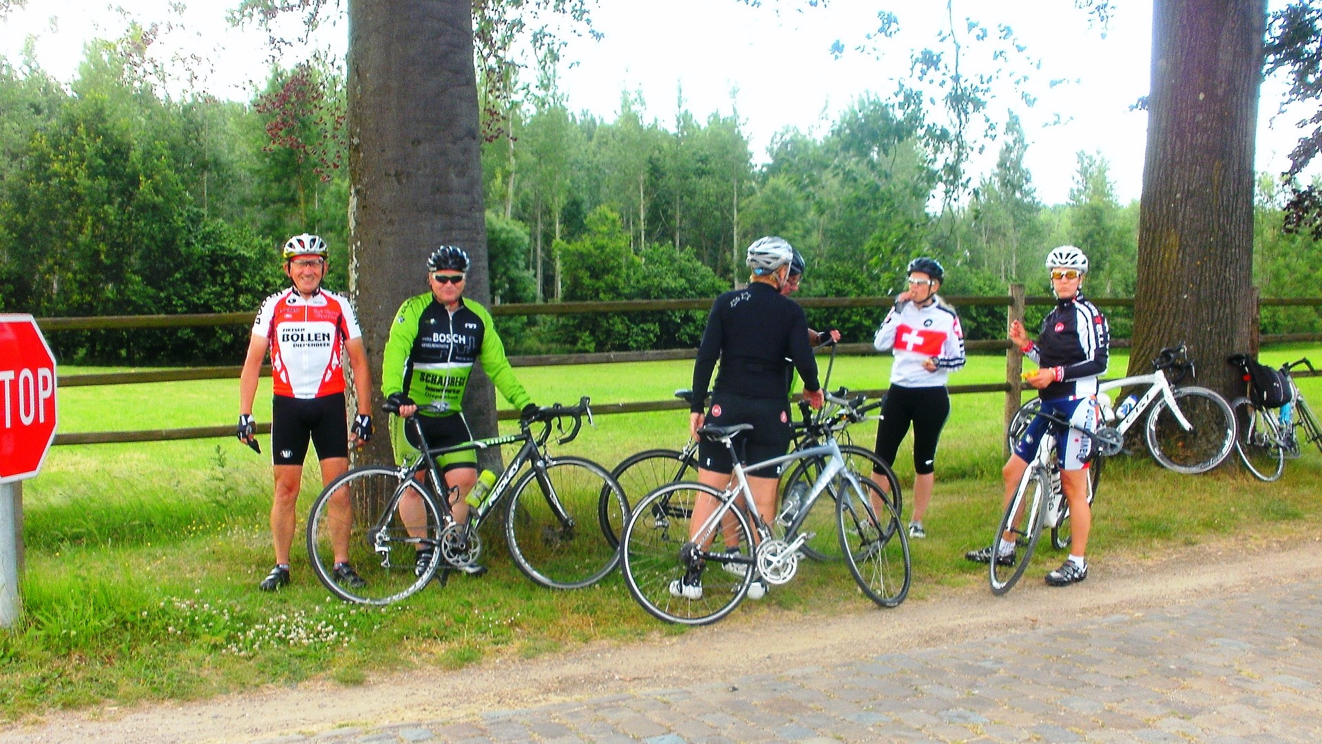 Vandaag een trainingsrit naar Vechmaal 48 Km gedaan samen met Ann Hensen, Benny Lambregs, Christel Valkenborg, Jeannine Tilkin, Kathleen Jans, Jos Thijs en Willy Reynders. Kathleen heeft vandaag het toch weer klaar gespeeld om de laatste rit met haar oude fiets lek te rijden. Geen nood echter de mannen stonden weer dadelijk paraat om haar terug op weg te helpen. Ik weet niet waarom, maar zij had die lekke band om haar heen gegord. Bij de volgende stop heb ik hem nog proberen op te blazen, maar het is mij niet gelukt. Heb hem dan maar meegekregen van haar als souvenir, voor haar oude fiets ten grave gedragen wordt. Ik zal hem zeker een plaatsje geven in mijn souvenir kast.