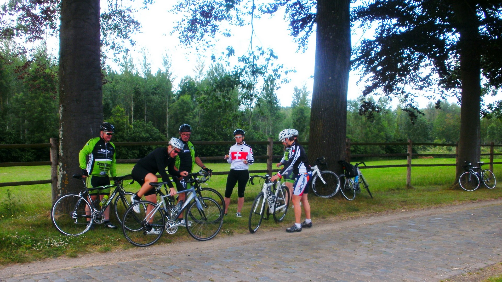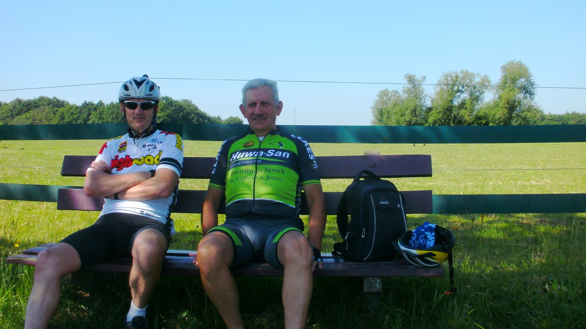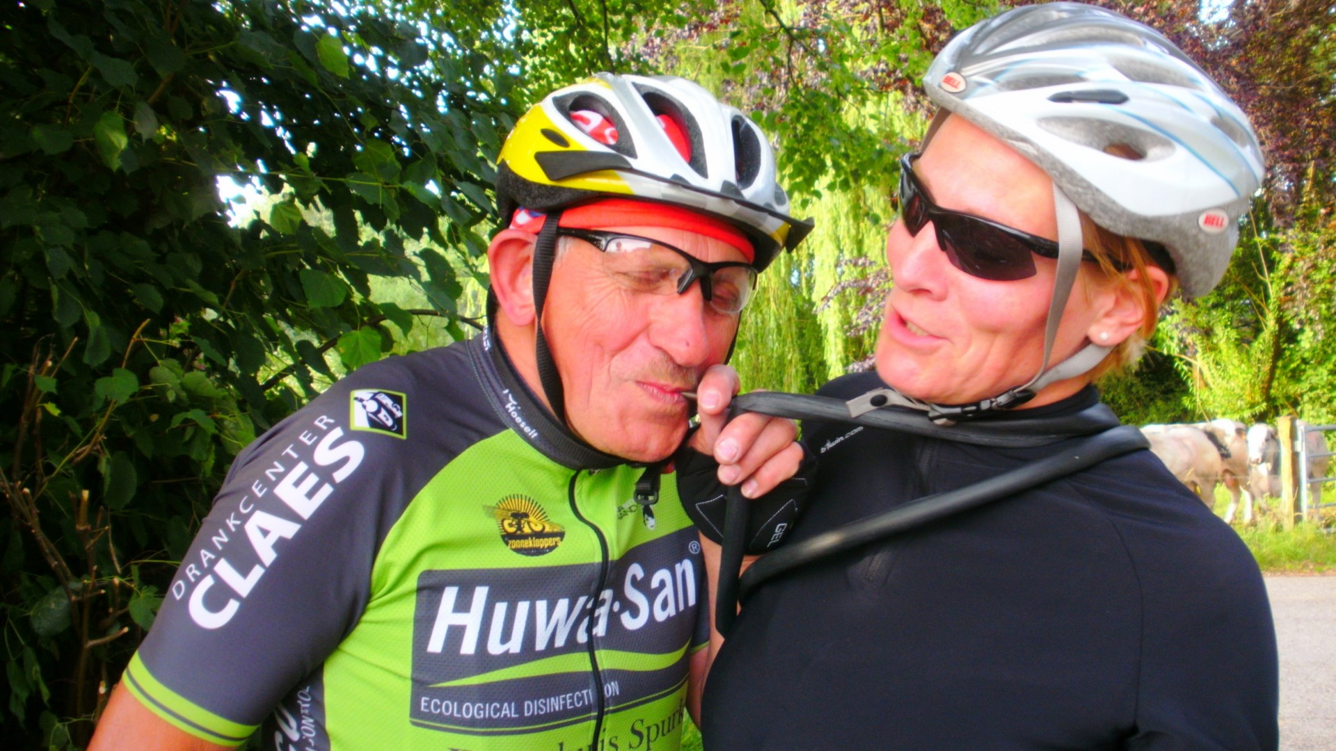 Vandaag een trainingsrit naar Vechmaal 48 Km gedaan samen met Ann Hensen, Benny Lambregs, Christel Valkenborg, Jeannine Tilkin, Kathleen Jans, Jos Thijs en Willy Reynders. Kathleen heeft vandaag het toch weer klaar gespeeld om de laatste rit met haar oude fiets lek te rijden. Geen nood echter de mannen stonden weer dadelijk paraat om haar terug op weg te helpen. Ik weet niet waarom, maar zij had die lekke band om haar heen gegord. Bij de volgende stop heb ik hem nog proberen op te blazen, maar het is mij niet gelukt. Heb hem dan maar meegekregen van haar als souvenir, voor haar oude fiets ten grave gedragen wordt. Ik zal hem zeker een plaatsje geven in mijn souvenir kast.