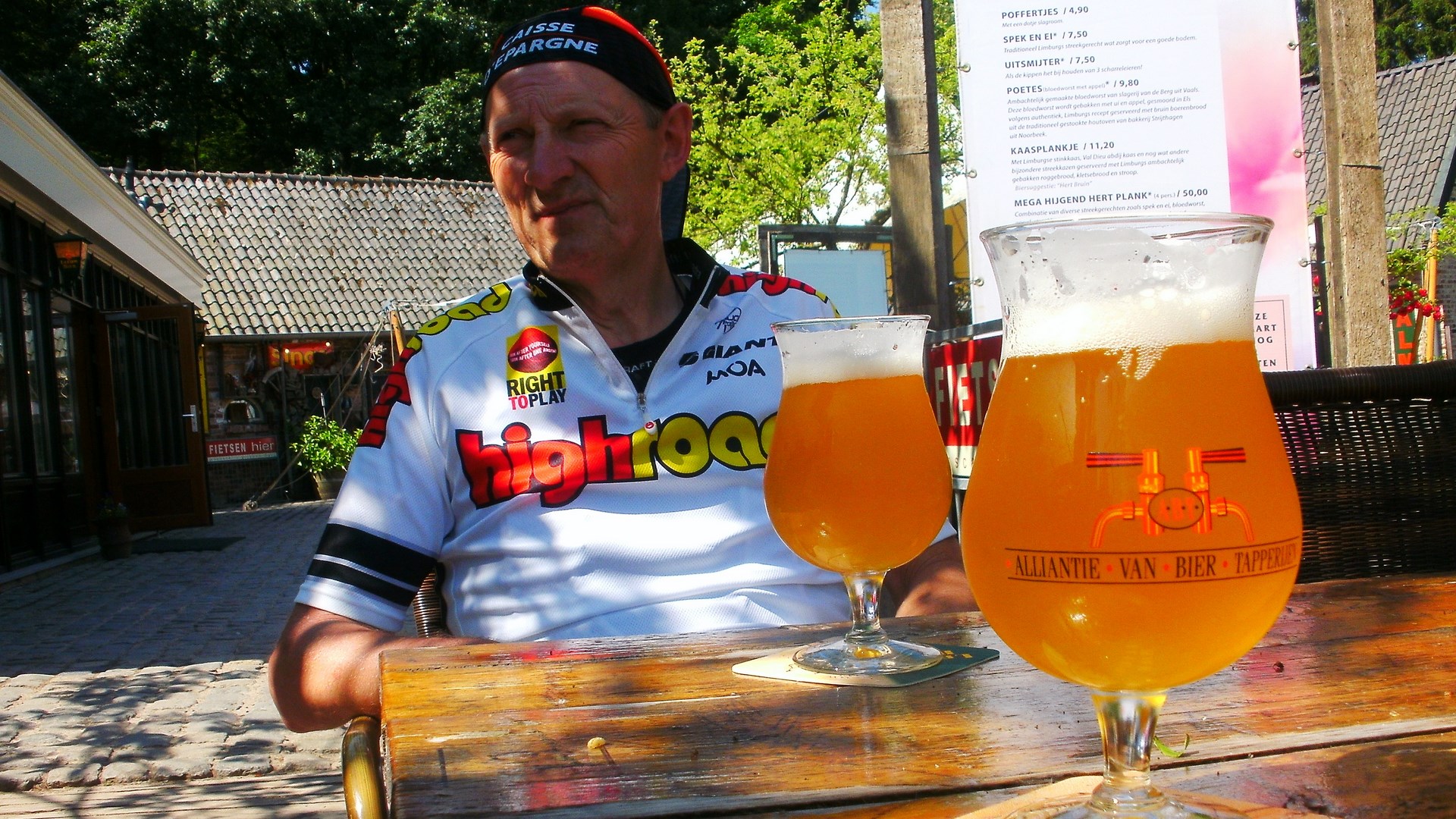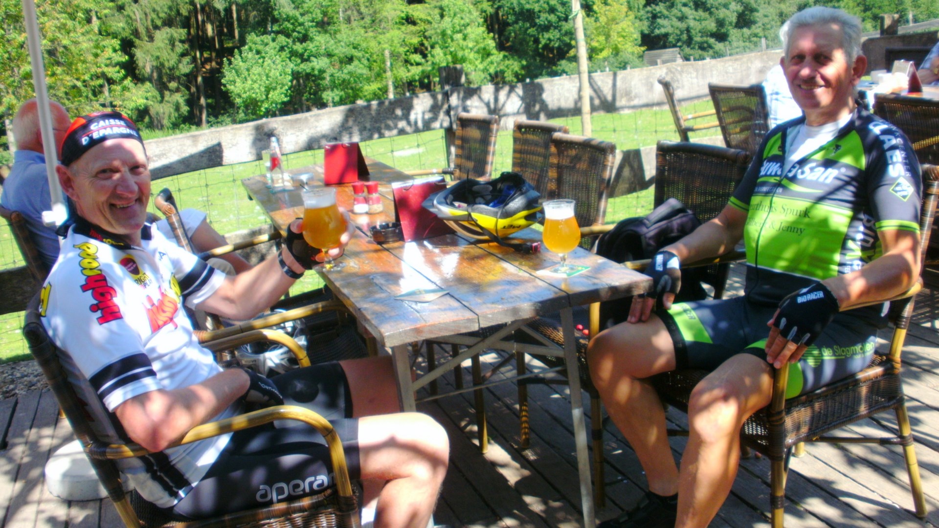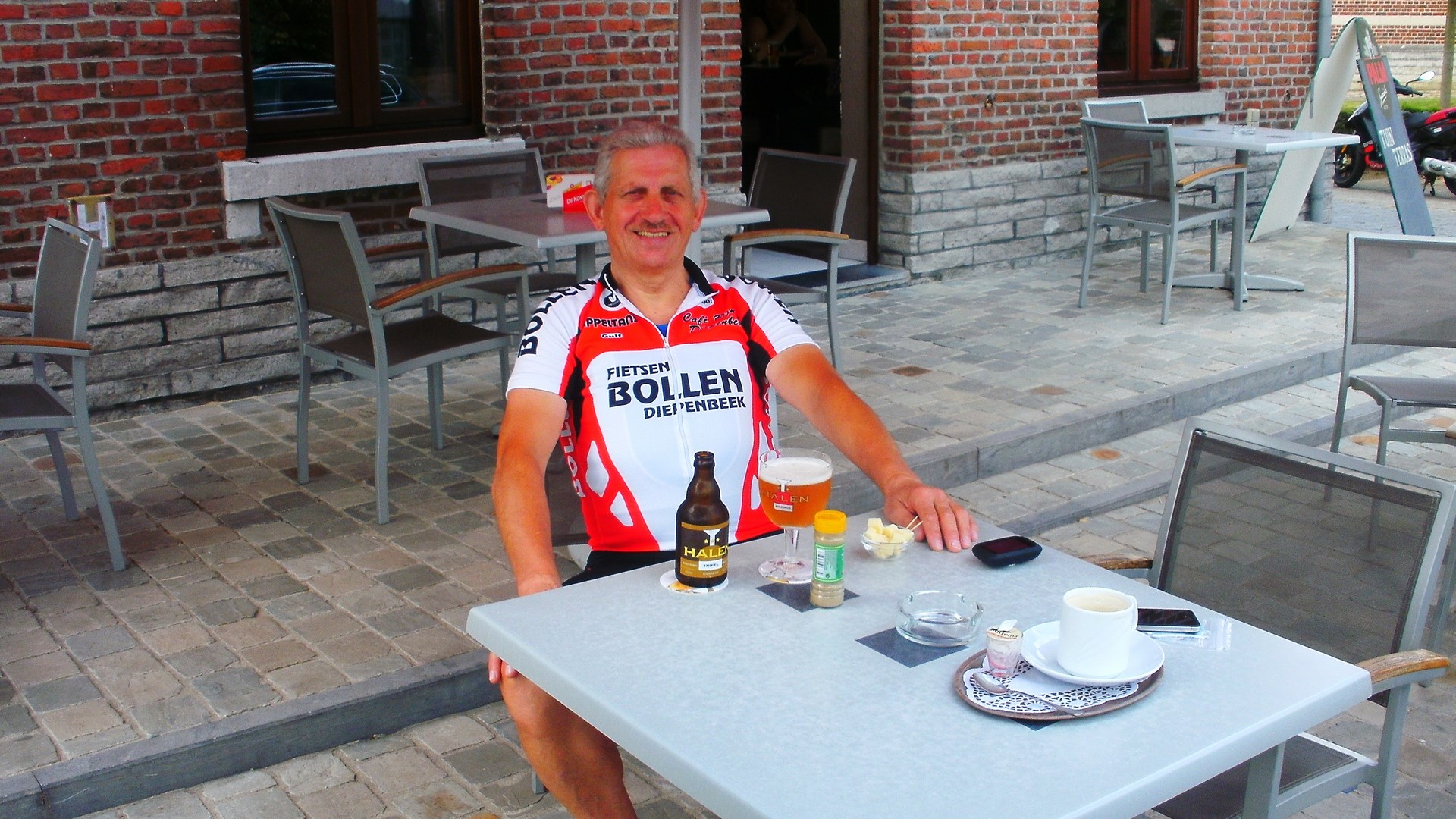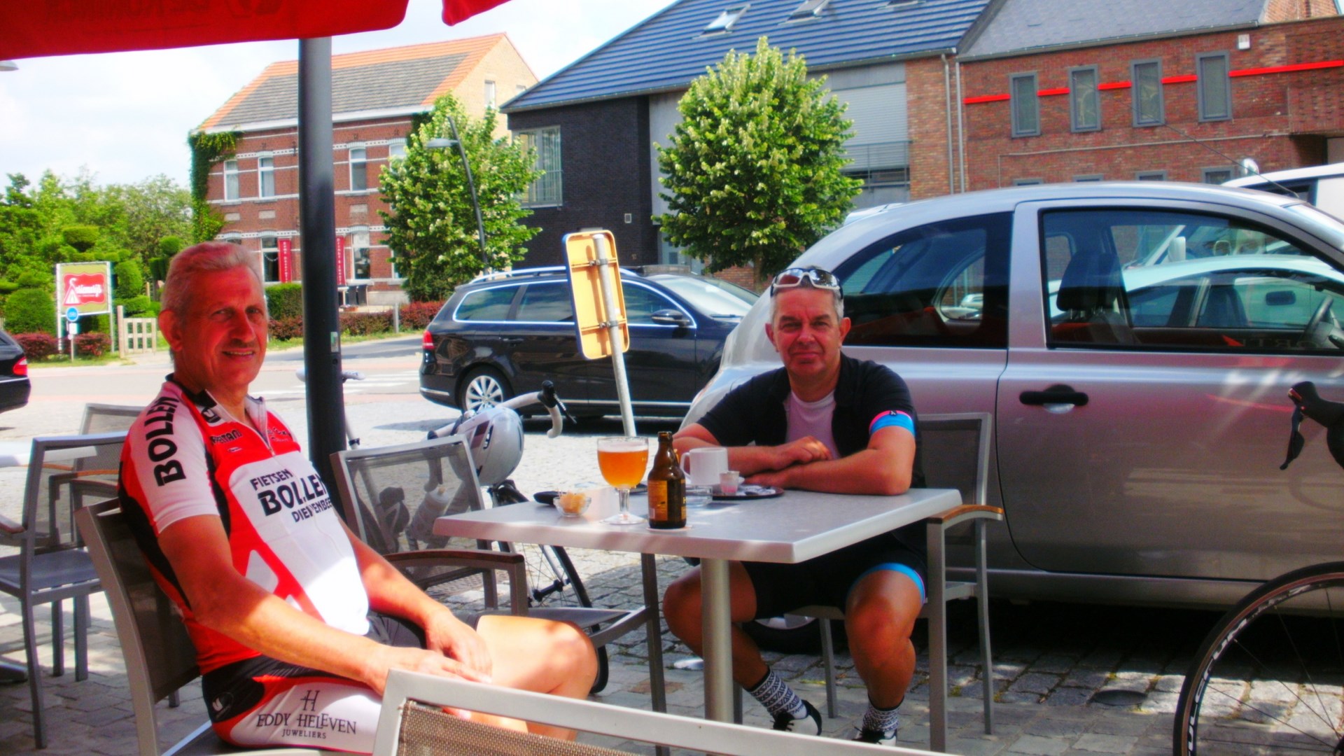 Vandaag een rit naar Vijlen (NL) 95 Km. gedaan samen met Pol Peters. Pittige rit vandaag (750 Hm.op gps) met een stop in Boscafe ’t Hijgend Hert met weer een zeer aangename bediening hier, (kan natuurlijk niet van alles foto’s maken) voor een streekbier van ’t vat Hert en een kaasje erbij. Ondanks het warme weer toch weer genoten van de rit met nog een afsluiter bij Cafe ’t Smidje te Munsterbilzen. Klik op de afbeeldingen voor meer info.