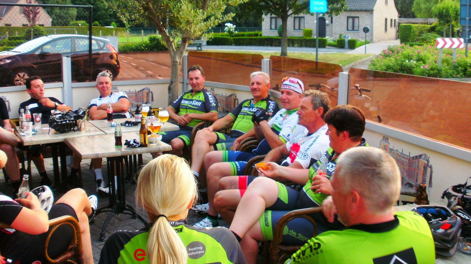 Vandaag een trainingsritje naar Berlingen 49 Km gedaan. samen met Anne-Marie Peumans, Benny Lambregs, Christel Valkenborg, Hilde Creemers, Jean Jermei, Jos Thijs en Kathleen Jans, Vandaag een iets pittiger parcours en Jean Jermei is dan ook iets eerder afgedraaid richting Jengske, waar we nog een gezellige afsluiter hebben gehouden. Te vermelden nog een lekke band voor Kathleen Jans. Iedereen heeft zich weer goed geamuseerd. Klik op de afbeeldingen voor meer info.
