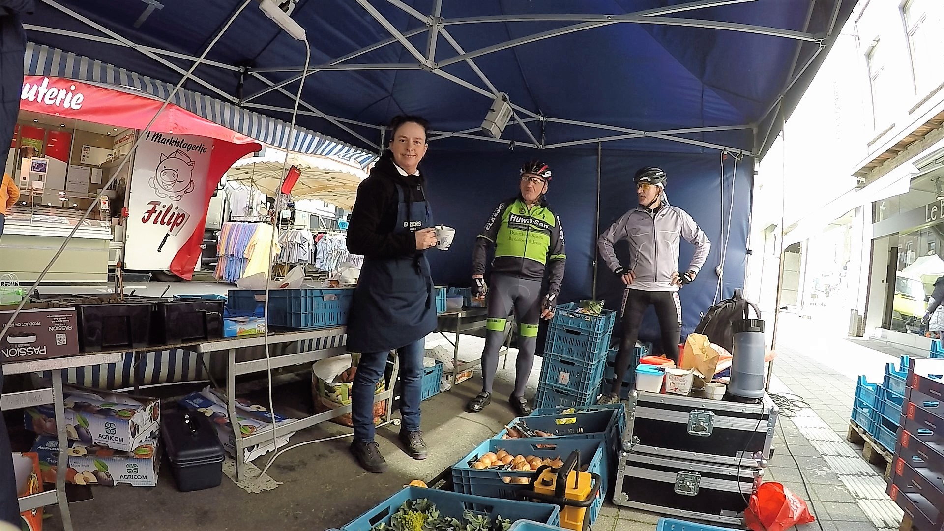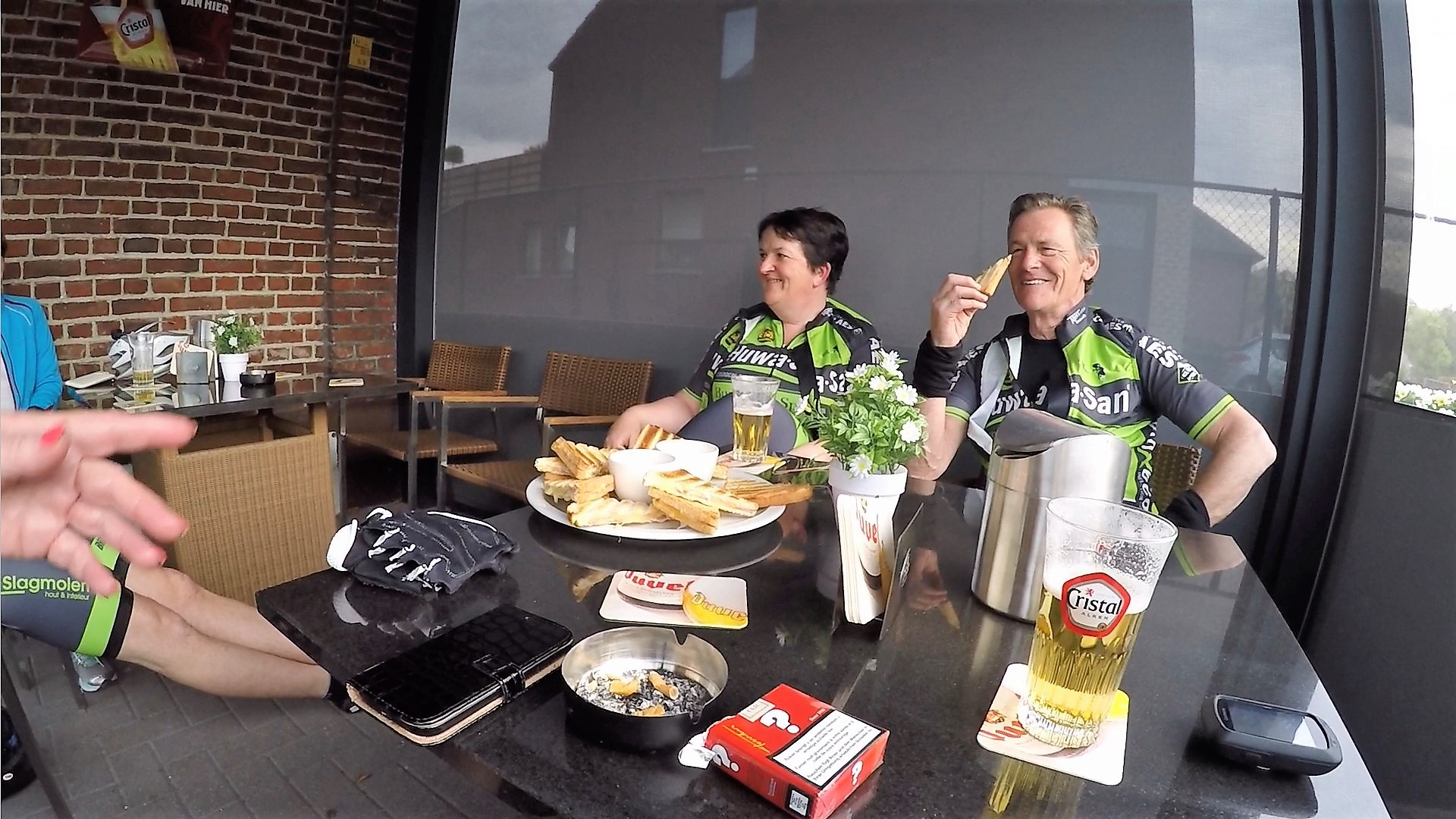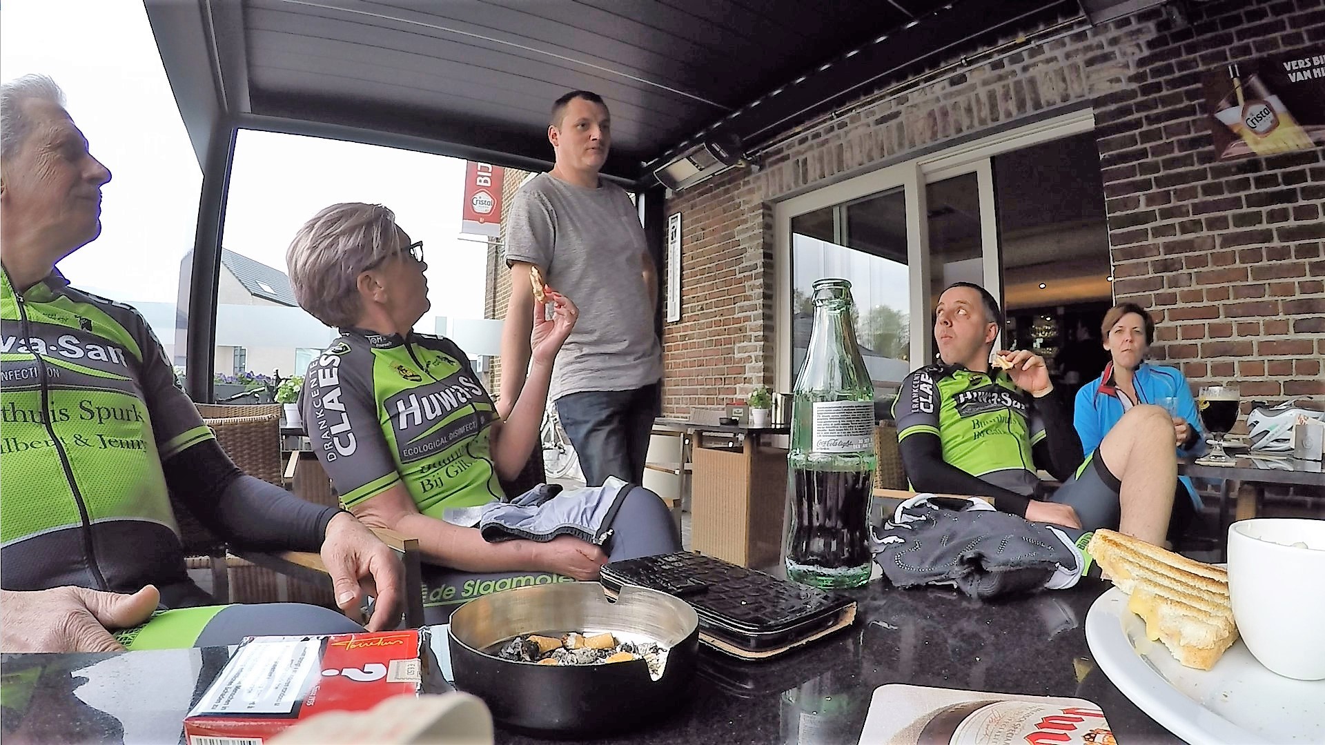 Vandaag een rit naar Avennes 111 Km. gedaan samen met Pol Peters. Alweer een pittige rit vandaag (905 Hm. GPS) en vooral de stevige wind (4Bf) de eerste 50 Km.. Op de terugweg in Waremme nog een bezoekje gebracht bij de collega’s op de markt. Alweer genoten van deze rit met nog een afsluiter bij cafe ’t Smidje te Munsterbilzen. Klik op de afbeeldingen voor meer info.