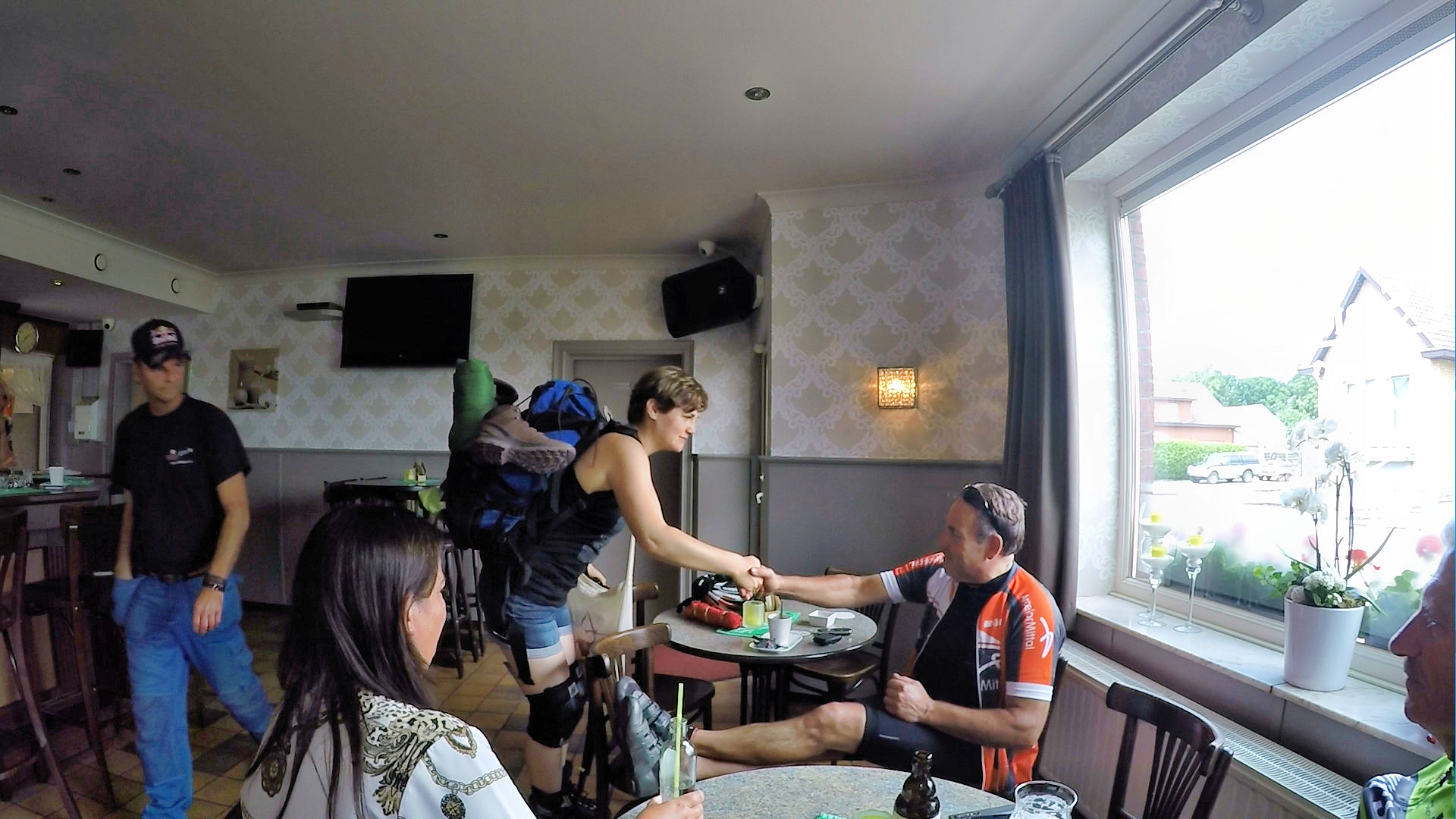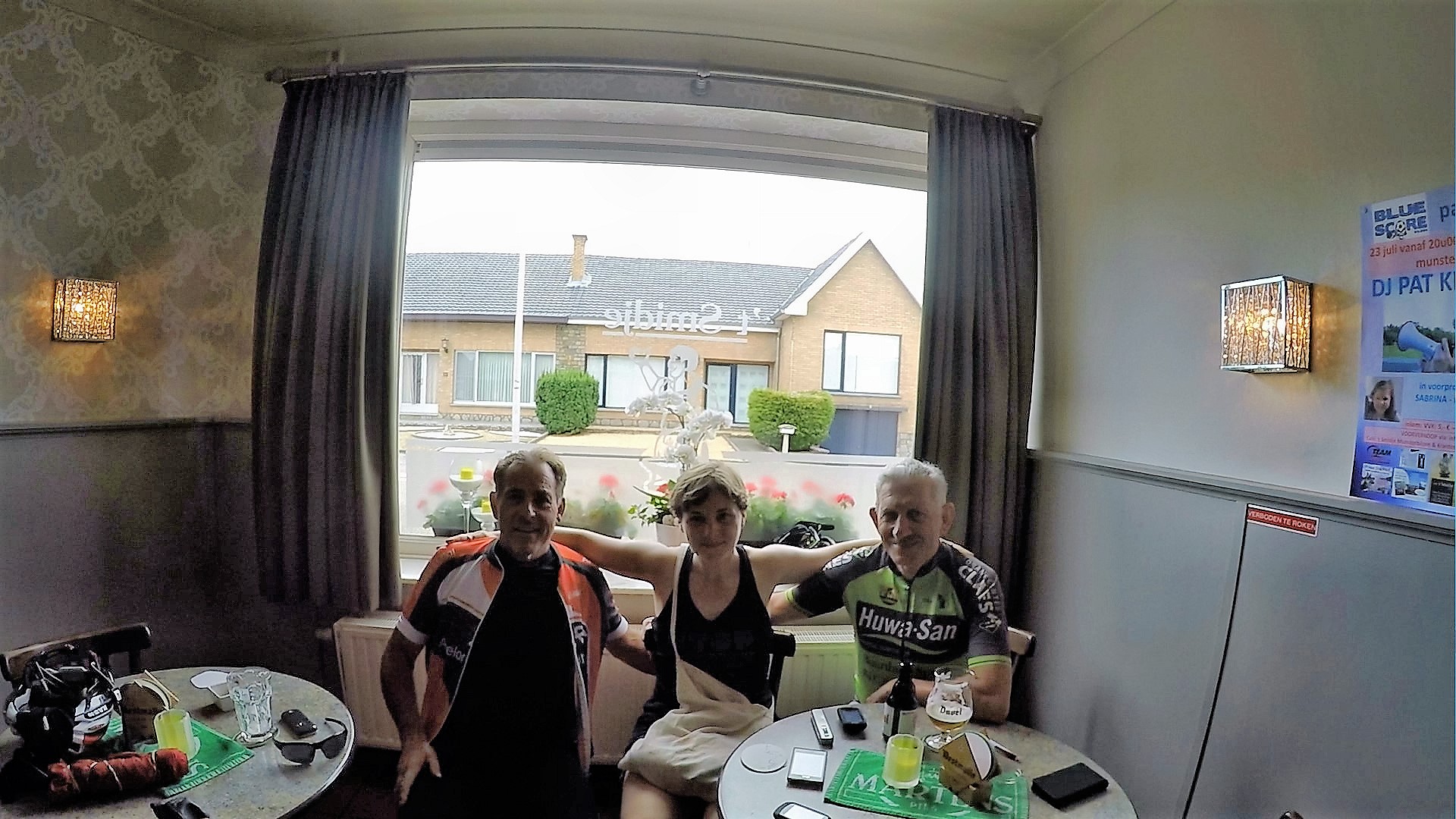 Vandaag een rit naar Budingen 95 Km. gedaan samen met Richard Vandebosch. Mooie rit door de fruitstreek en op rustige wegen. Een stop gehouden na 44 Km. aan het oude station van Budingen. Met nog een afsluiter bij Cafe ’t Smidje. Hier ontmoeten we Jenny aus Köln. Deze vriendelijke jonge dame doet een voet tocht (en op roller skates) vanuit Keulen naar Oostende. Zij kwam in het smidje de weg vragen naar Hasselt, waar wij als vriendelijke heren (Richard in zijn beste Duits) natuurlijk ons best deden om dat uit te leggen. Nog een dikke proficiat aan deze jonge dame. Ge moet het toch maar doen in je eentje. Klik op de afbeeldingen voor meer info.