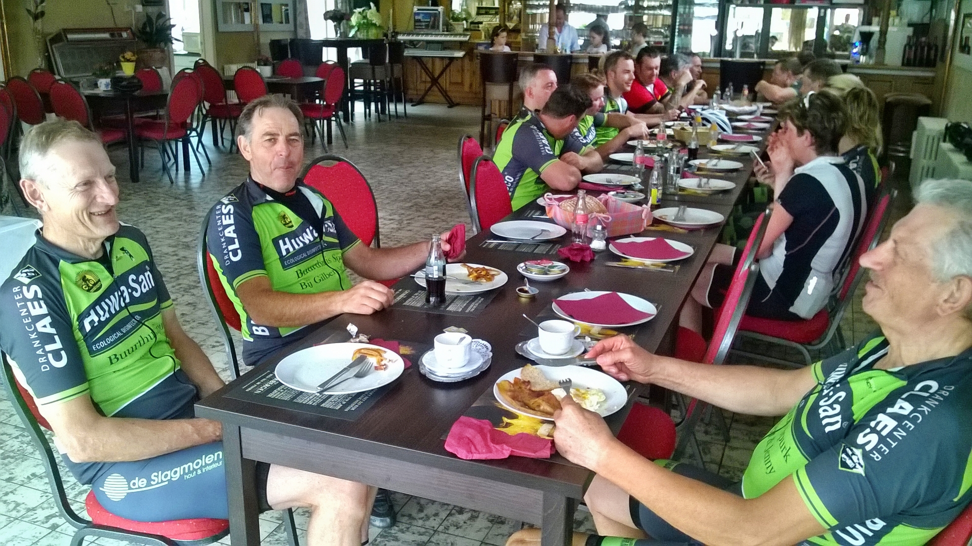 Mooi fietsweer vandaag. En zoals altijd weer een gezellige afsluiter in het buurthuis met nog een traktatie op spek en ei van Jenny en Gilbert voor hun verjaardag beiden 70.