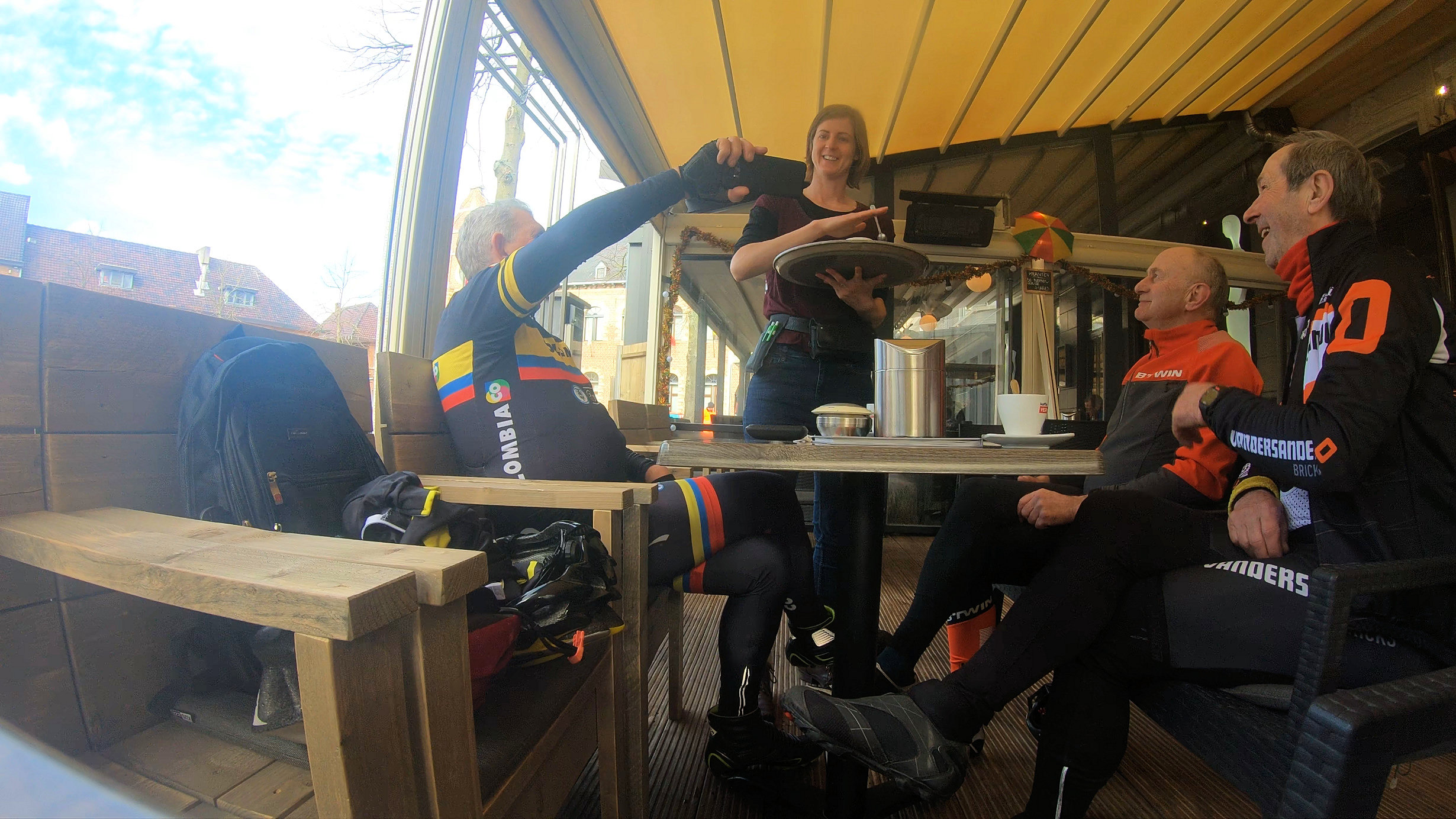 Vandaag onze tweede clubrit gedaan naar Ulbeek 62 Km. Met 17 vertrekkers vandaag (6 Dames en 11 Heren). Met nog een traktatie van Norbert en Pol voor hun verjaardag bij Jenny en Gilbert in het buurthuis. Nog een dikke proficiat Norbert en Pol. Klik op de afbeeldingen voor meer info. Alle foto’s klik op deze “link”.