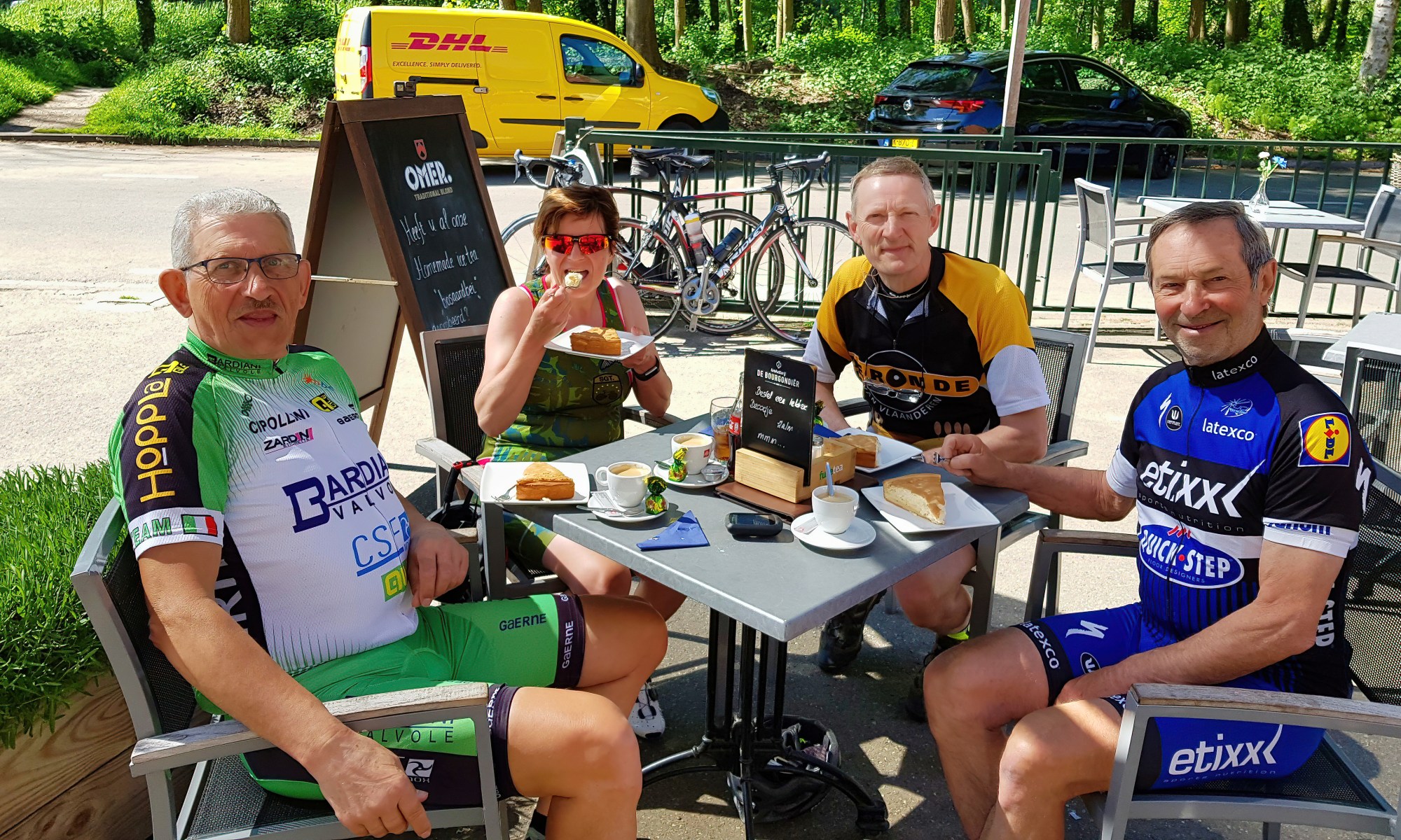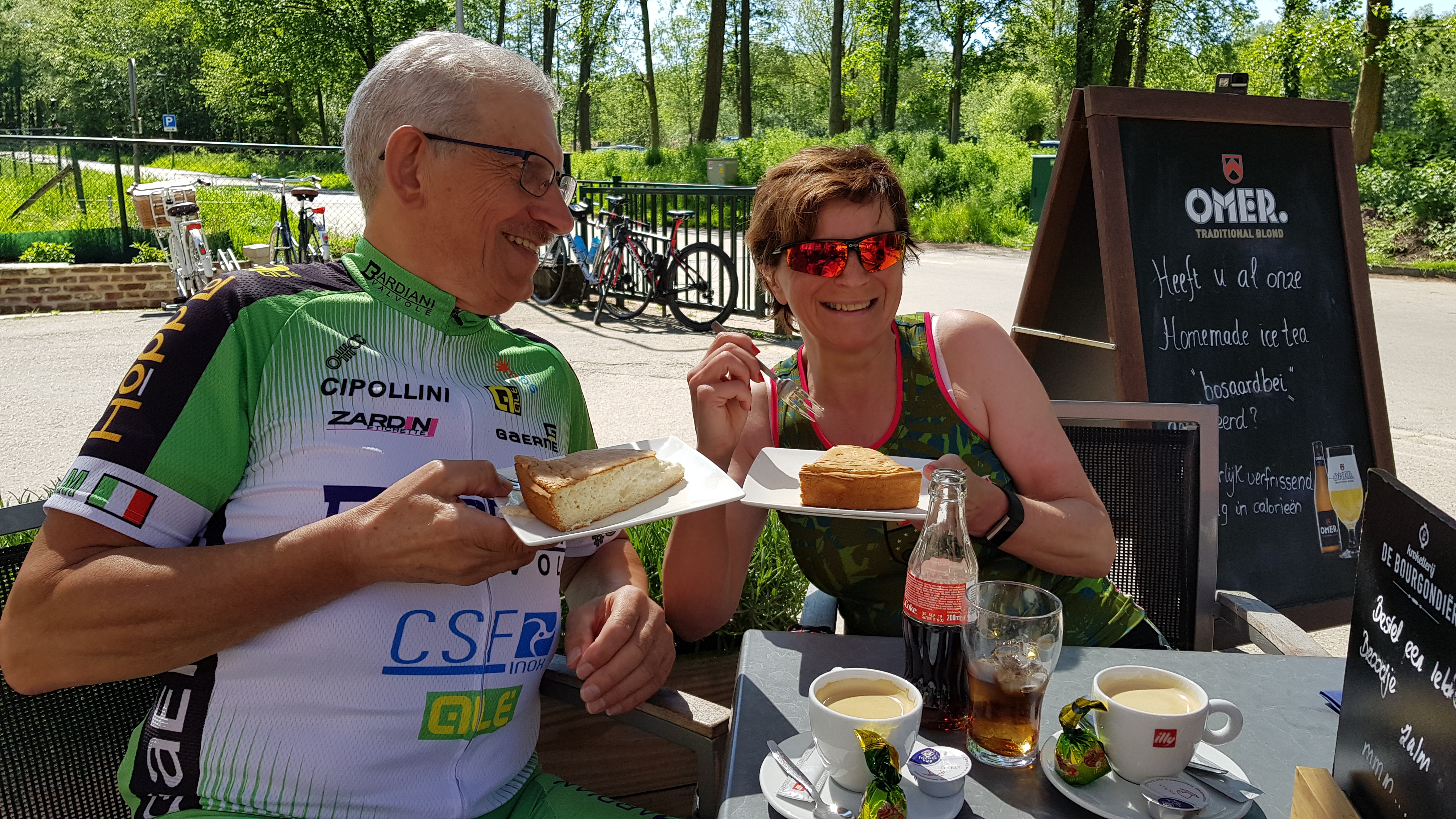 Vandaag een rit naar Brunssum (NL) 118 Km. gedaan samen met Jean Stevens, Nicole Knapen en Pol Peters. Met een eerste boterham stop in Oensel na 39 Km. En een tweede koffie stop in “Brasserie De Muldermolen” na 71 Km. te Schinnen, met alweer een aangename en vriendelijke bediening. Redelijk pittige rit vandaag met (663 Hm. GPS) maar weer prachtig fietsweer, en weer een heel mooi stukje door natuurgebied gereden in Brunssum. Klik op de afbeeldingen voor meer info. Alle foto’s klik op deze “link”.