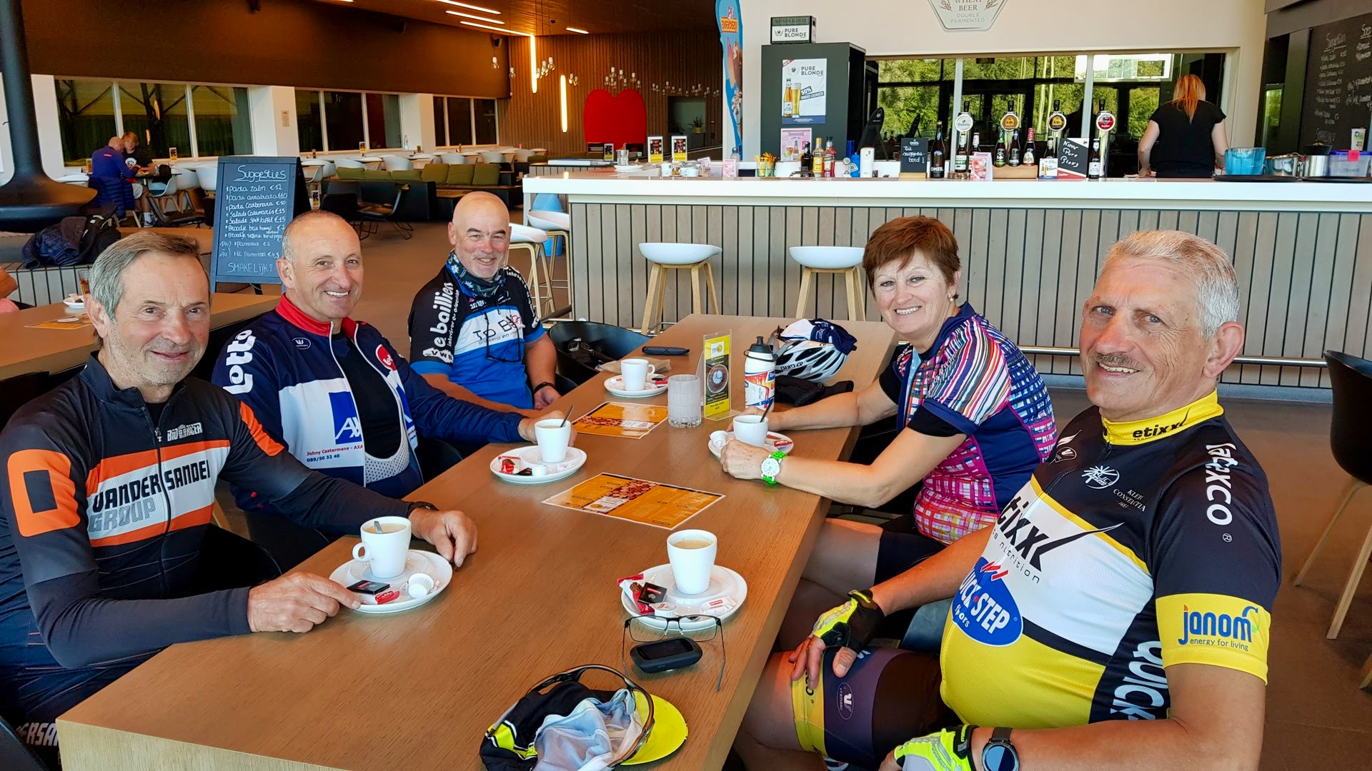 Vandaag een rit naar Kortenaken 107 Km. gedaan samen met Jean Stevens, Johnny Merken, Johny Muffels, Raymond Wijffels en Richard Vandebosch. Met een koffie stop in “Café Oud Cortenaeken” te Kortenaken na 51 Km. Licht golven parcours met een pittige wind vandaag. Nog even nagenieten van de rit bij cafe ’t Smidje te Munsterbilzen.
