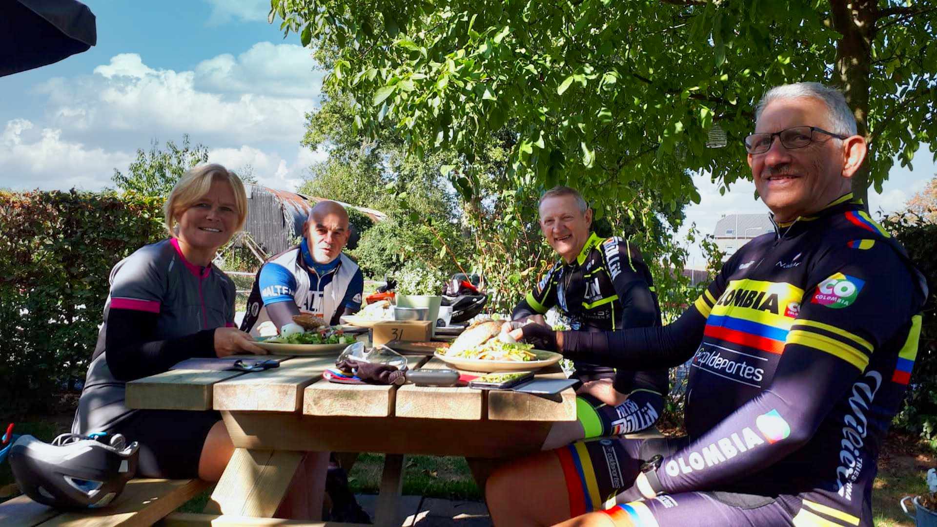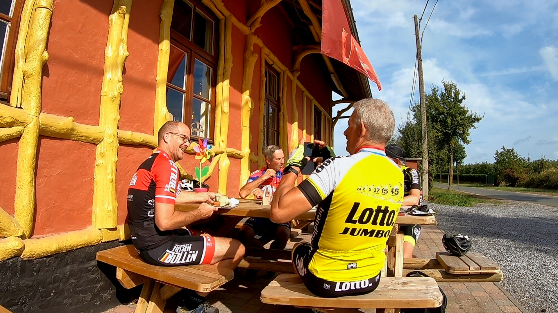 Vandaag een rit naar Wommersom 109 Km. gedaan samen met Freddy Wijnen, Jean Stevens en Johny Muffels. De geplande koffie stop in Wommersom is niet kunnen doorgaan (gesloten op maandag). Doorgereden tot Drieslinter waar we op het terras wel hebben kunnen genieten van koffie en vlaai. Weer mooi fietsweer vandaag met nog een afsluiter bij cafe ’t Smidje te Munsterbilzen. Klik op de afbeeldingen voor meer info.